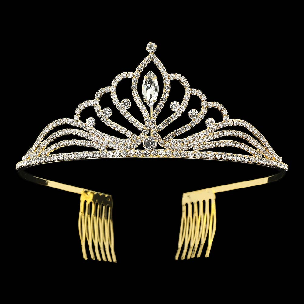 Marquise Stone Center Rhinestone Pave Princess Tiara