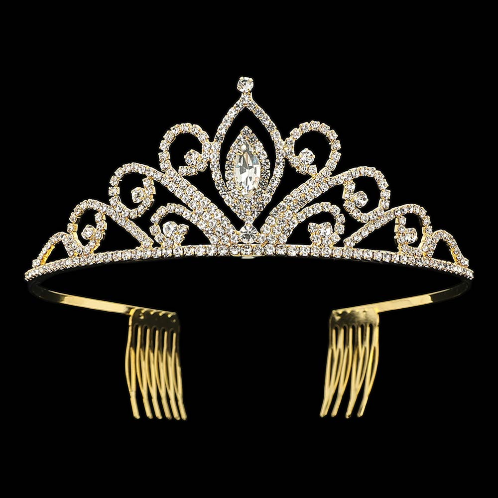 Marquise Stone Center Rhinestone Pave Princess Tiara