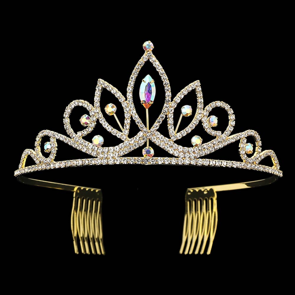 Details • Size : 1.8" H • Elegant tiara hair comb featuring sparkling crystal accents arranged in a graceful crown silhouette. Designed to sit securely in styled hair, this accessory adds refined shine and a regal touch for weddings, proms, pageants, and formal celebrations.