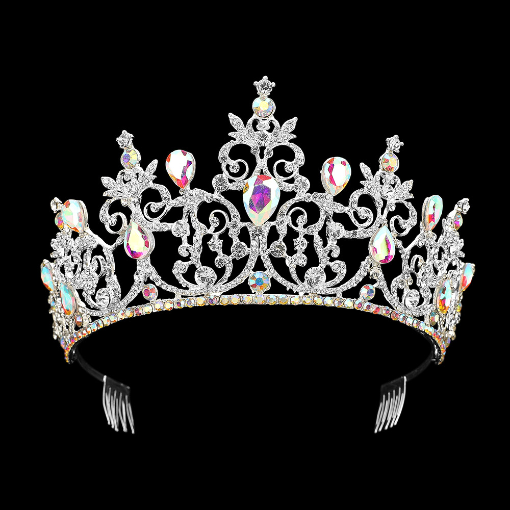 Teardrop Stone Cluster Accent Crown Princess Tiara