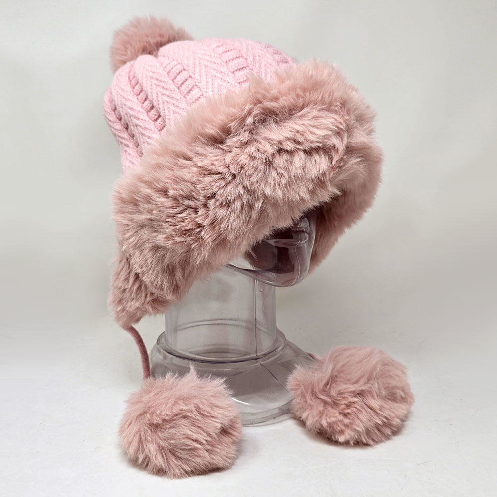 Faux Fur Ear Flap Pom Pom Winter Trapper Hat