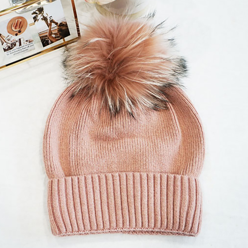 Fox Fur Pom Slouchy Knit Winter Beanie Hat