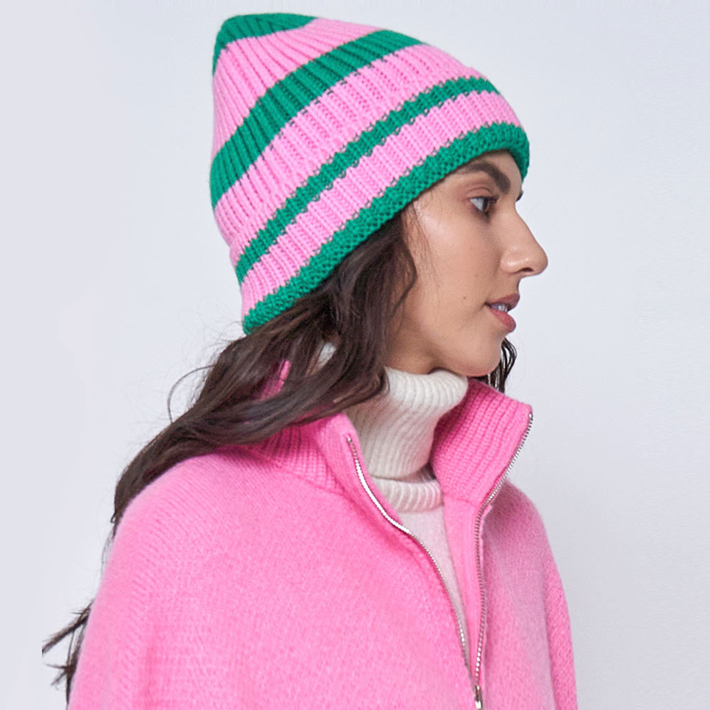 Striped Cuff Beanie Hat