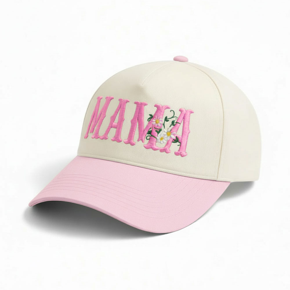 Details • Size : One Size Fits All - Adjustable Strap Makes Fit Comfortable • 5 Panel Canvas Cap : Adjustable Buckle Closure, Relaxed Fit and Pre-Curved Visor • Material : 100% Cotton • Celebrate motherhood in style with this charming “MAMA” embroidered cap accented with a delicate floral touch. Its comfortable fit and casual design make it a perfect go-to accessory for daily wear, errands, or relaxed outings. A thoughtful gift idea for moms who love effortless style and personality.