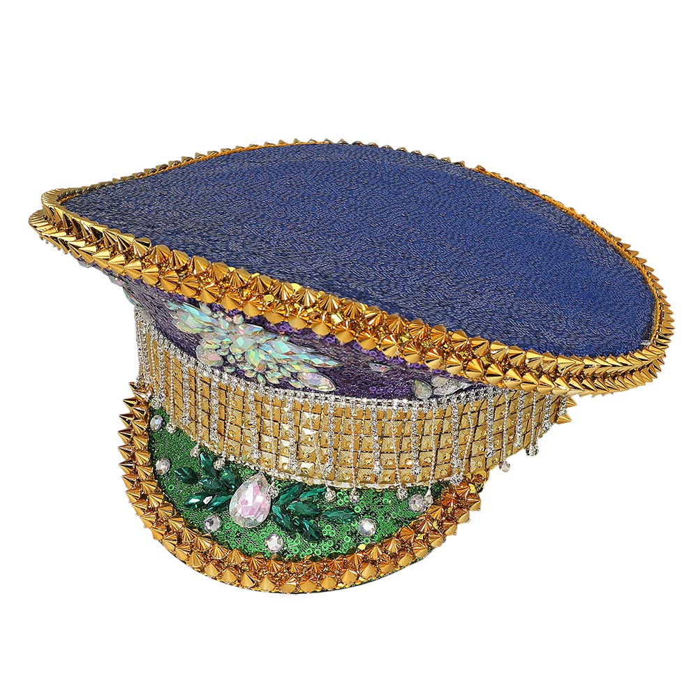 Mardi Gras Marquise Stone Cluster Embellished Rhinestone Sequin Captain Hat