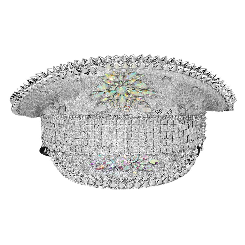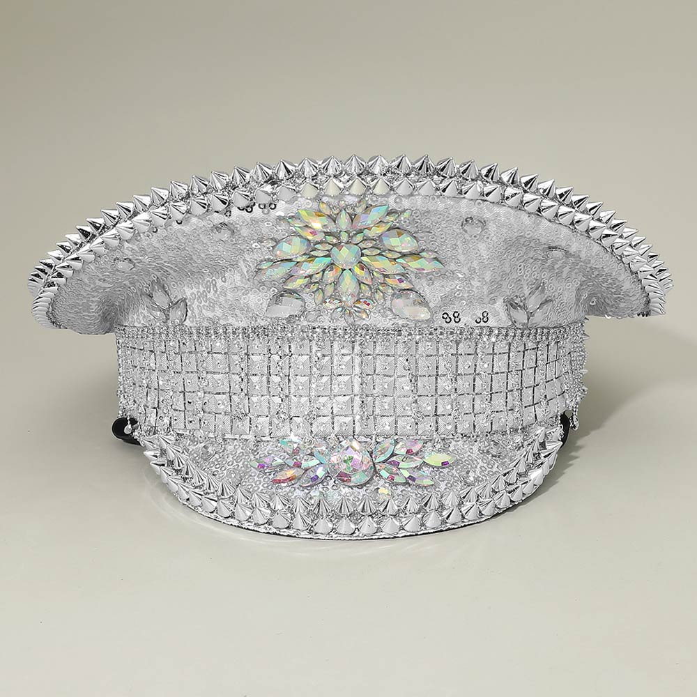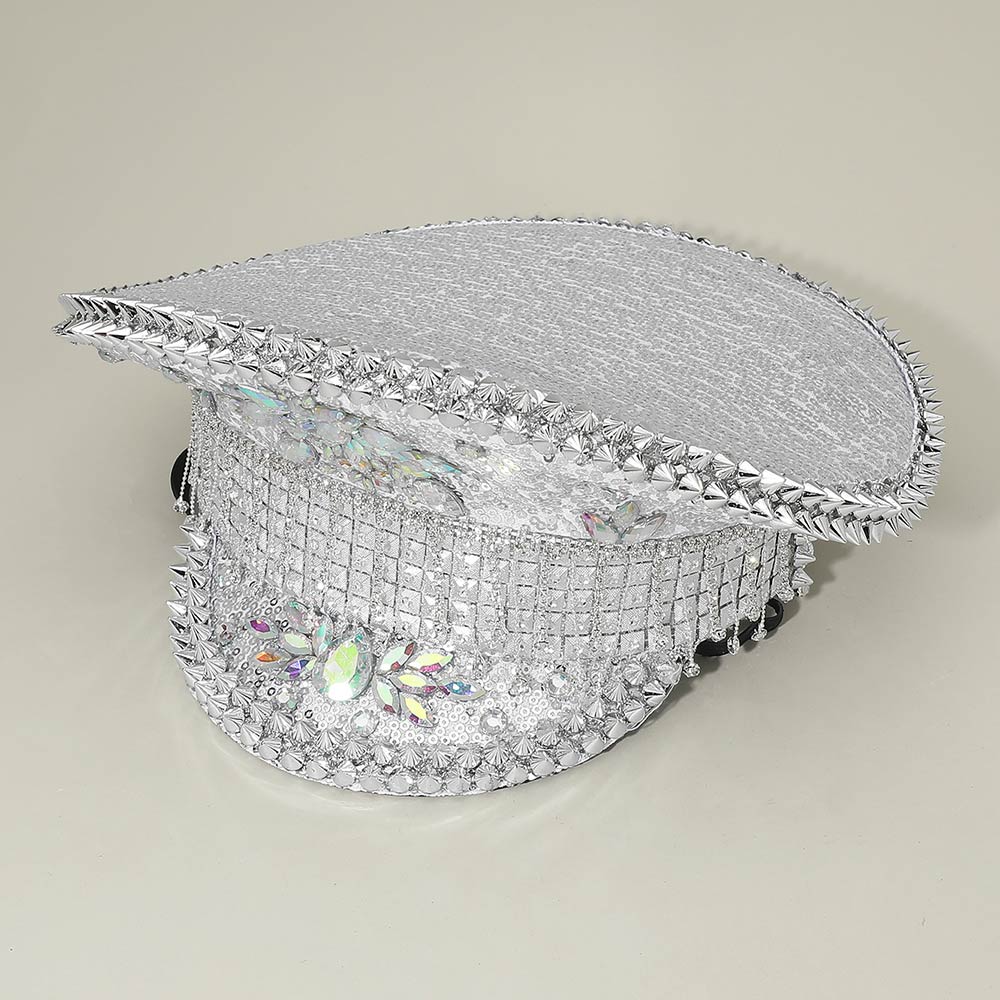 Marquise Stone Cluster Embellished Rhinestone Sequin Captain Hat