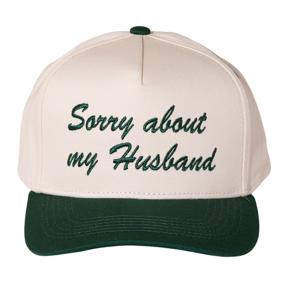Details • Size : One Size Fits All - Adjustable Strap Makes Fit Comfortable • 5 Panel Canvas Cap : Adjustable Buckle Closure, Relaxed Fit and Pre-Curved Visor • Humorous embroidered cap featuring the playful phrase “Sorry about my Husband.” Perfect for casual wear, gag gifts, parties, or as a fun conversation starter. Adjustable fit makes it a lighthearted accessory and a great novelty gift idea for friends, family, or anyone with a sense of humor.