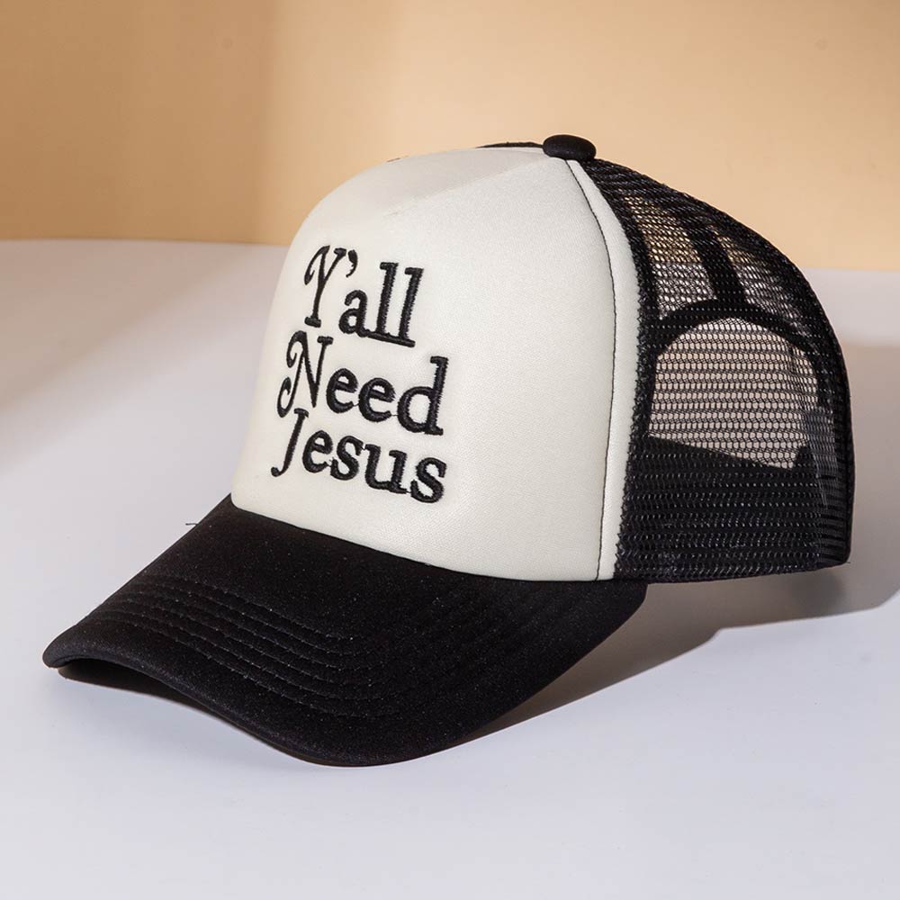 YALL NEED JESUS Message Embroidered Mesh Back Trucker Hat
