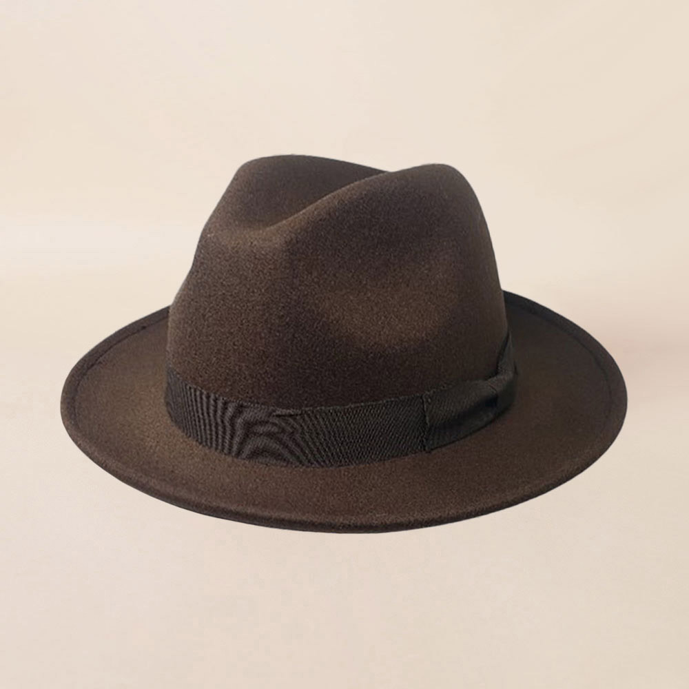 • This classic fedora hat features a timeless silhouette accented by a sleek ribbon band. Designed for versatile wear, it adds a refined and polished touch to any look—perfect for elevating casual outfits or completing a sophisticated ensemble with effortless style.