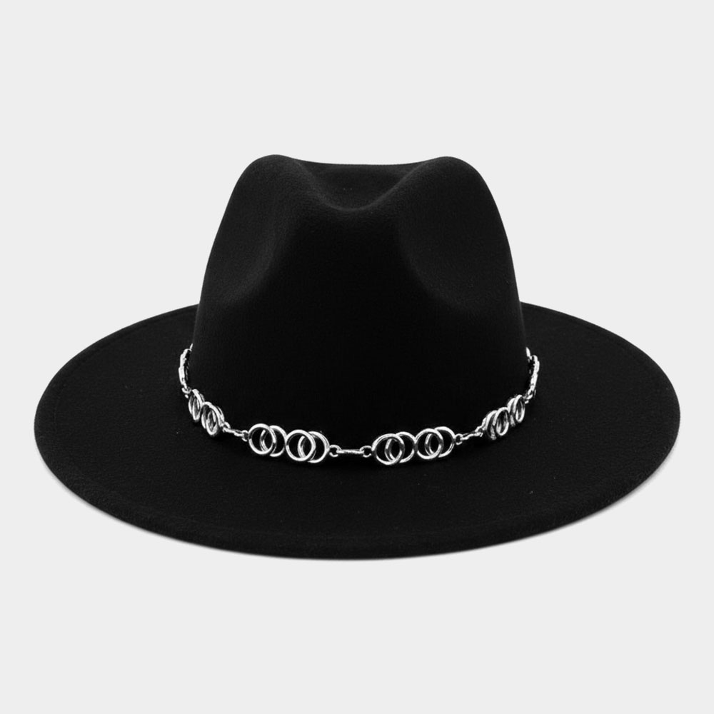 Details • Crown Circumference: 23" • Crown Height : 4.75" • Brim Width : 2.5" • Material : 100% Polyester • Elevate your look with this sophisticated wide-brim fedora featuring a refined chain detail that adds a touch of modern style. Perfect for polished outfits or everyday wear, it offers a striking silhouette designed to enhance any wardrobe with effortless charm and versatility.