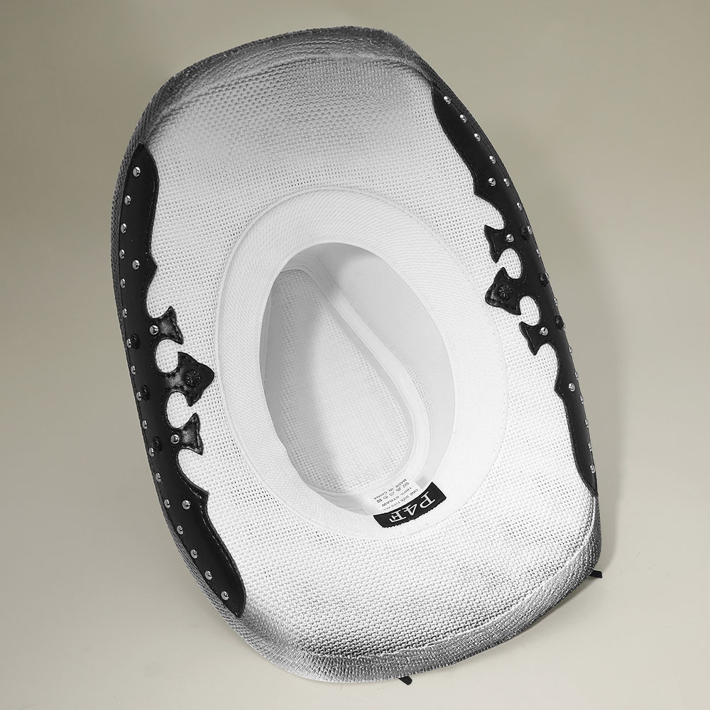 Metal Steer Head Emblem Studded Faux Leather Band Western Straw Cowboy Fedora Hat