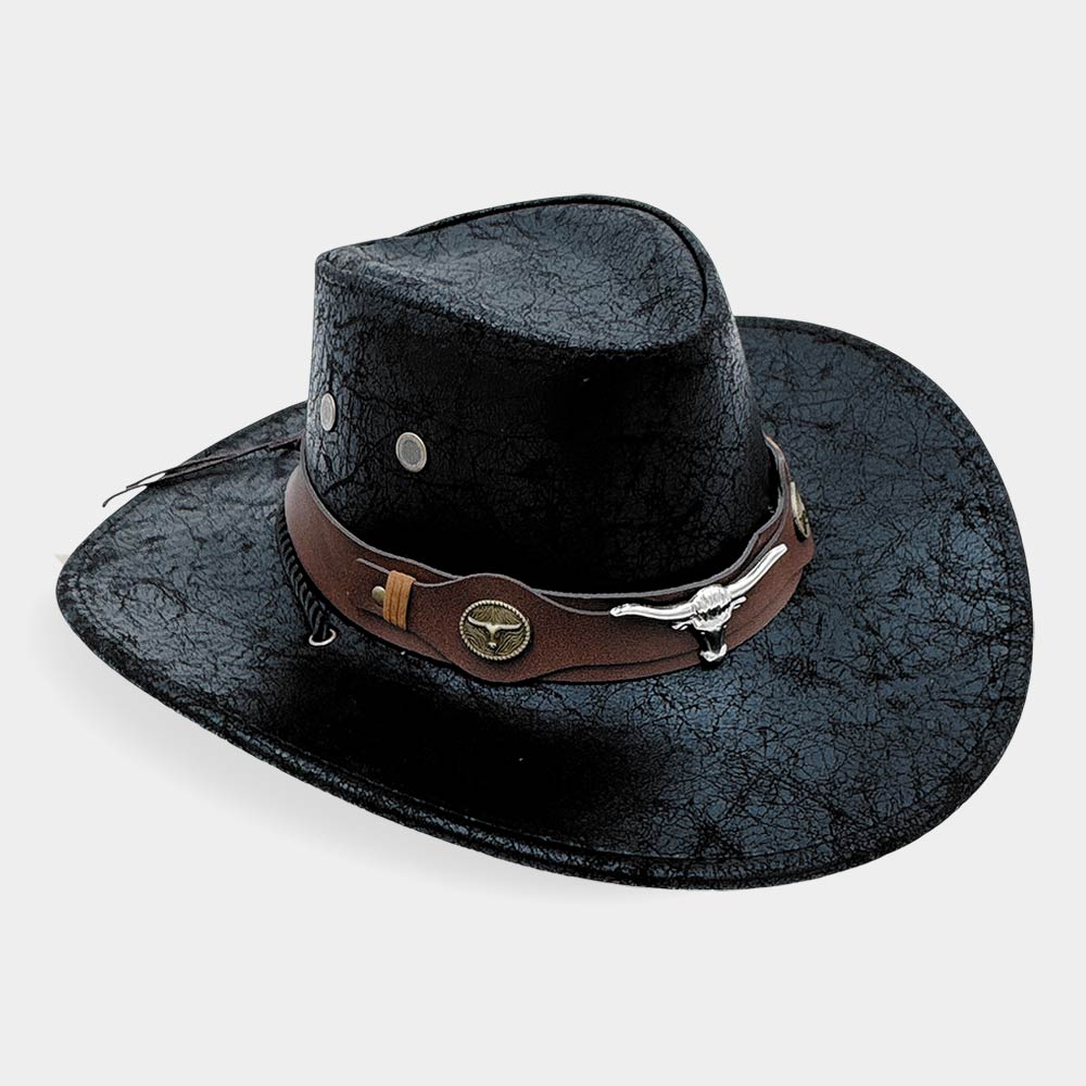 Steer Head Accent Faux Leather Belt Western Cowboy Hat