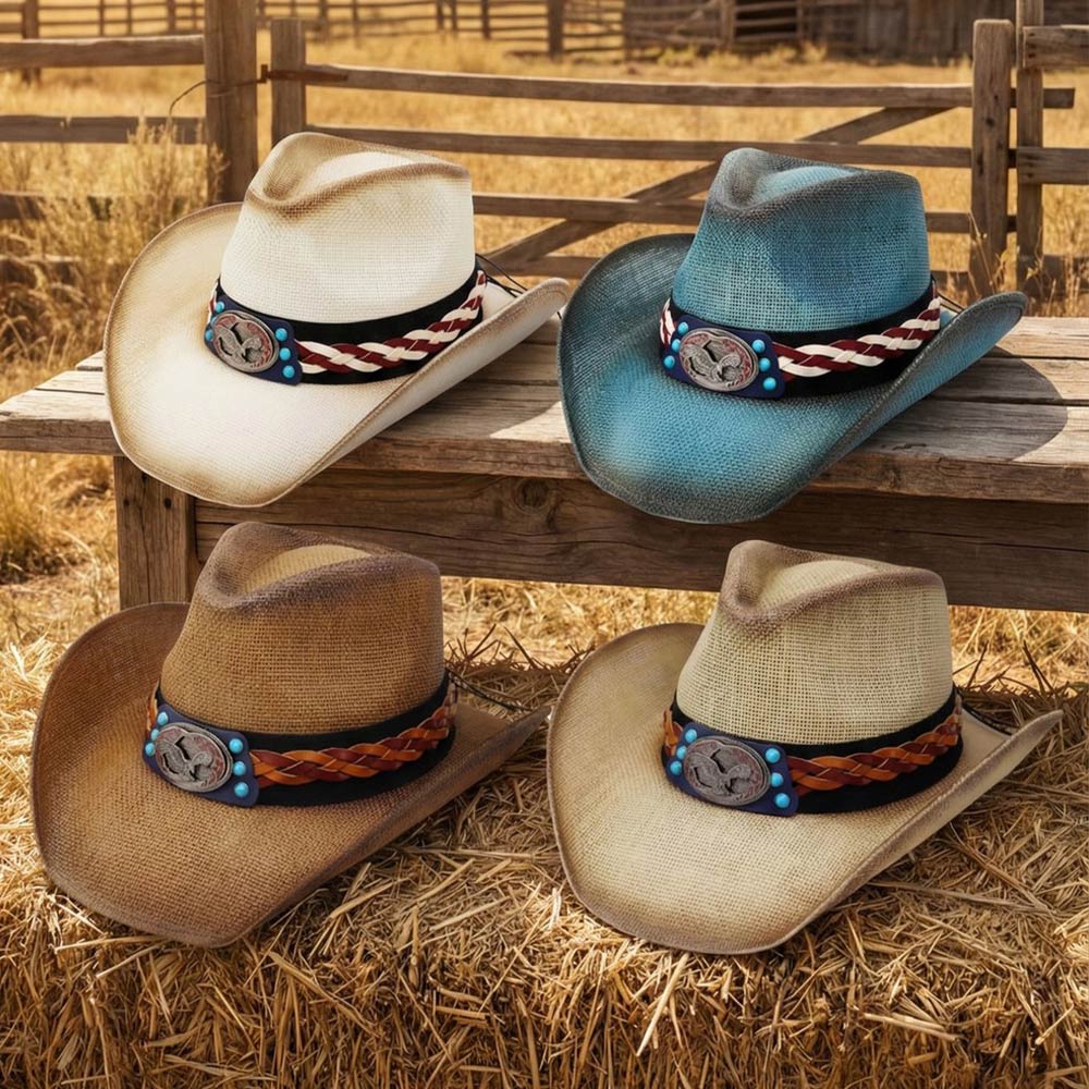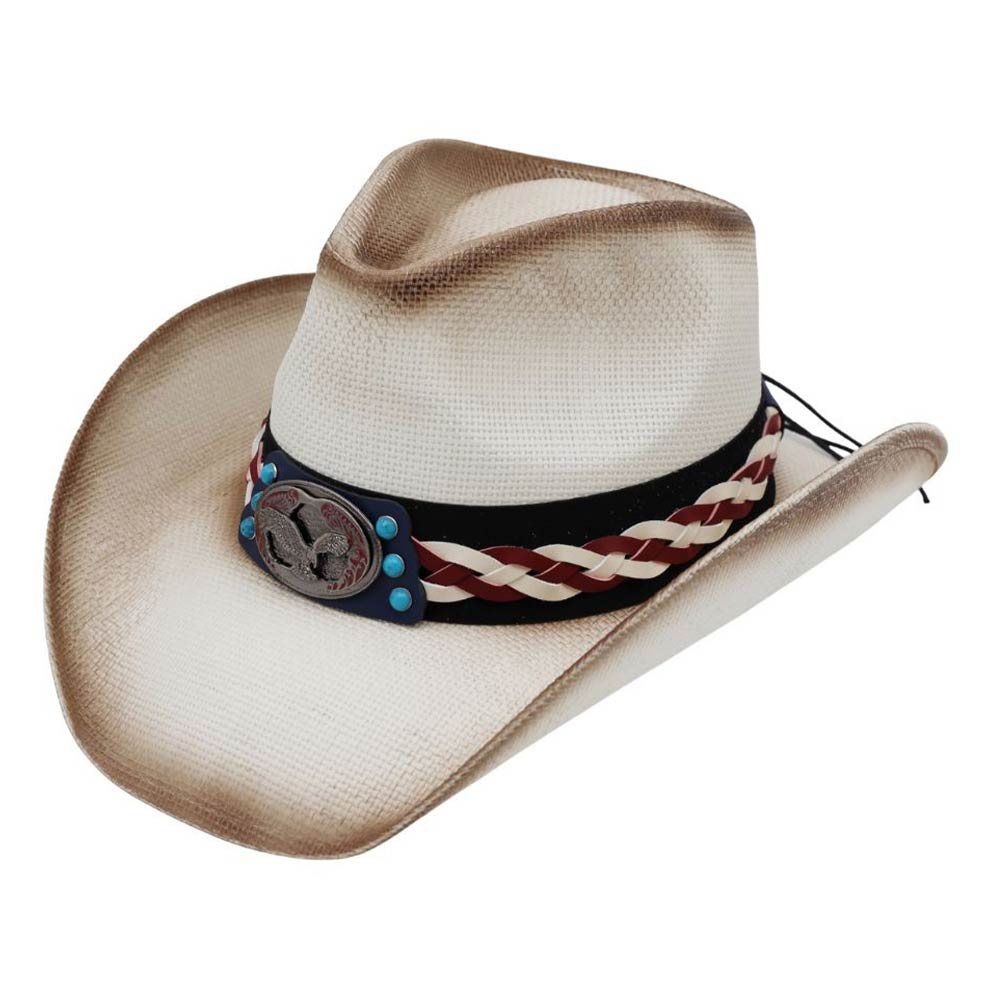 Vintage Eagle Concho Accent Braided Band Western Straw Cowboy Hat