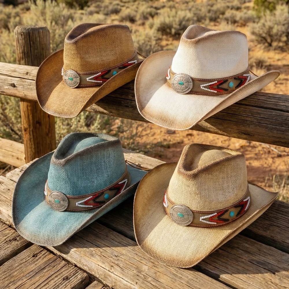 Vintage turquoise Concho Beaded Band Western Straw Cowboy Hat Vintage turquoise Concho Beaded Band Western Straw Cowboy Hat Vintage turquoise Concho Beaded Band Western Straw Cowboy Hat