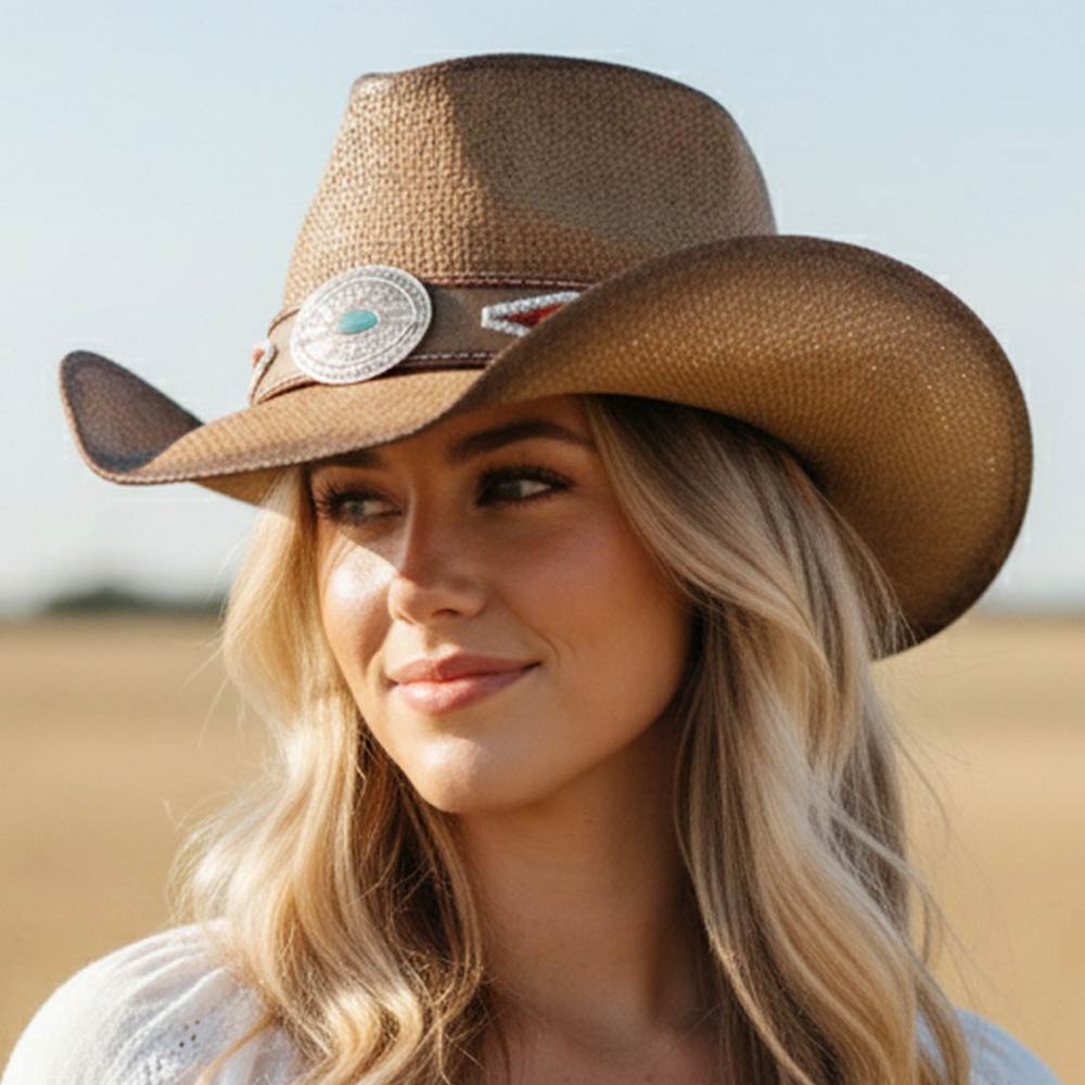 • Statement western-style cowboy hat featuring a decorative beaded band and bold concho accent for an authentic, trend-forward look. Ideal for festivals, rodeos, boutiques, and western-inspired outfits, this hat adds character, attitude, and standout appeal to any accessory collection.