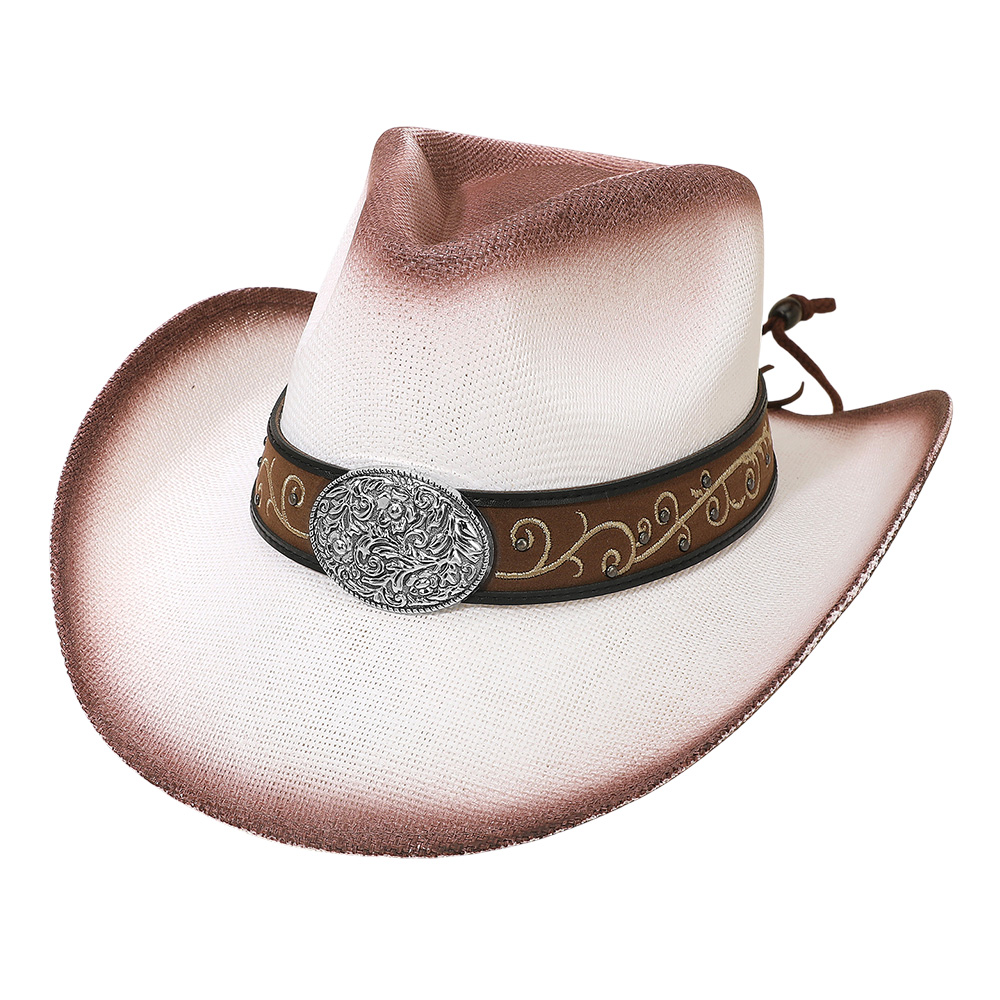 • Capture authentic western style with this cowboy hat featuring a tooled band and ornate silver concho. Perfect for rodeos, concerts, or casual outings, it blends rugged tradition with refined details, making it a versatile accessory for any cowboy-inspired look.