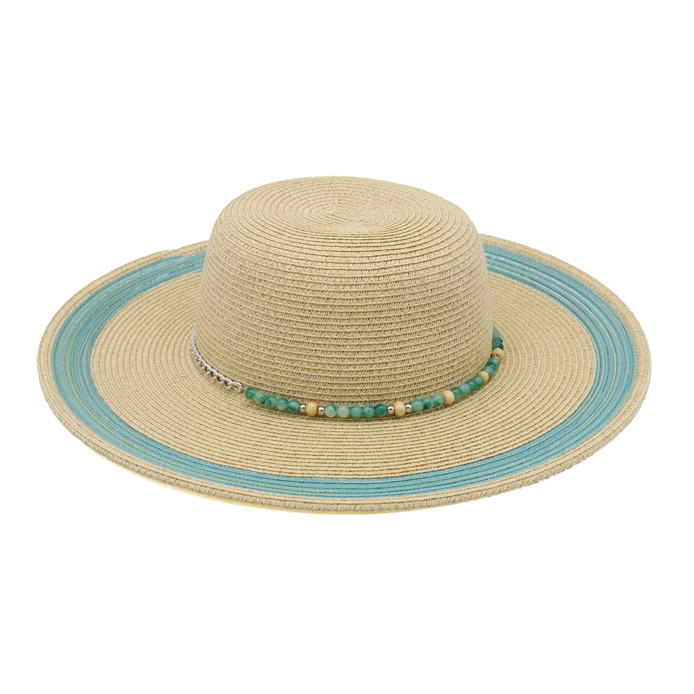 Beaded Band Shimmer Straw Wide Brim Summer Sun Hat