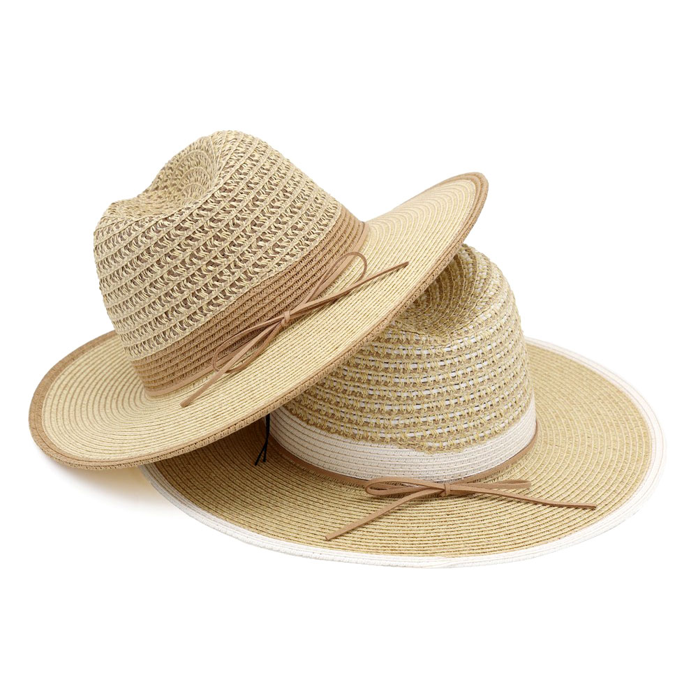 Details • Size : One Size • Material : 80% Paper, 20% Polyester • This wide brim sun hat features a textured woven crown with a subtle tied accent for a refined, effortless look. Designed for everyday wear, vacations, and warm-weather styling, it pairs easily with casual outfits and resort looks. A versatile accessory ideal for boutique assortments, seasonal collections, and trend-focused merchandising displays.