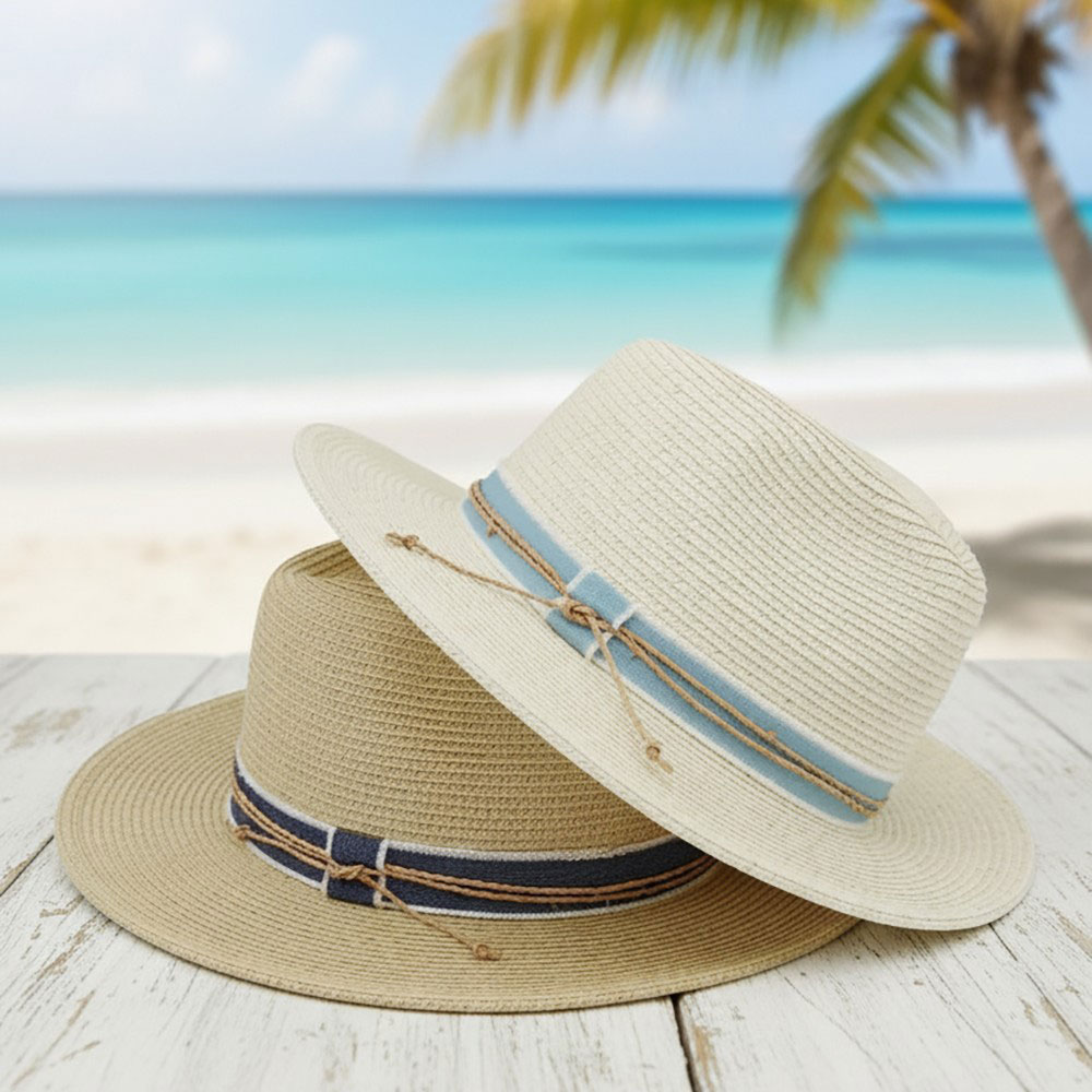 Details • Size : One Size • Material : 80% Paper, 20% Polyester • This classic summer fedora sun hat features a structured silhouette with a sleek band accent for a timeless, versatile look. Perfect for everyday styling, travel displays, outdoor events, and seasonal fashion collections, it adds polished appeal to resort wear, casual outfits, and gift-ready accessory assortments.