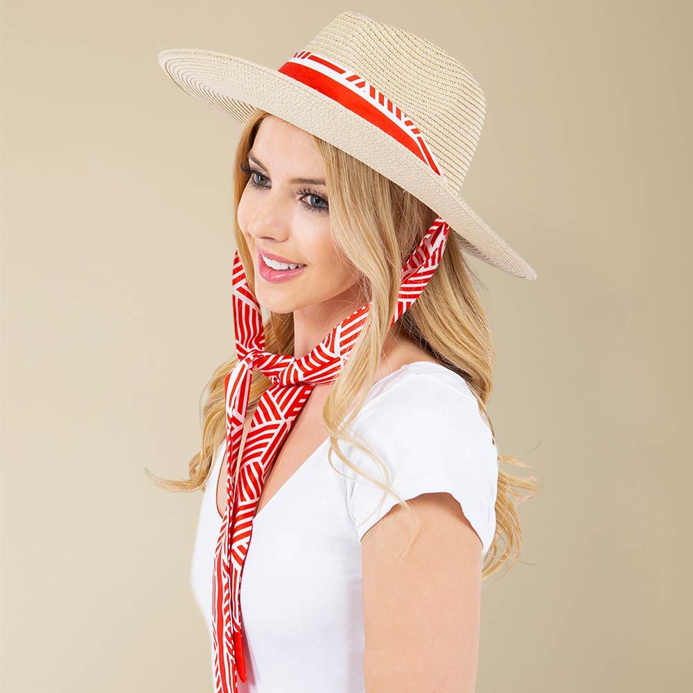 Geometric Pattern Scarf Band Woven Fedora Sun Hat