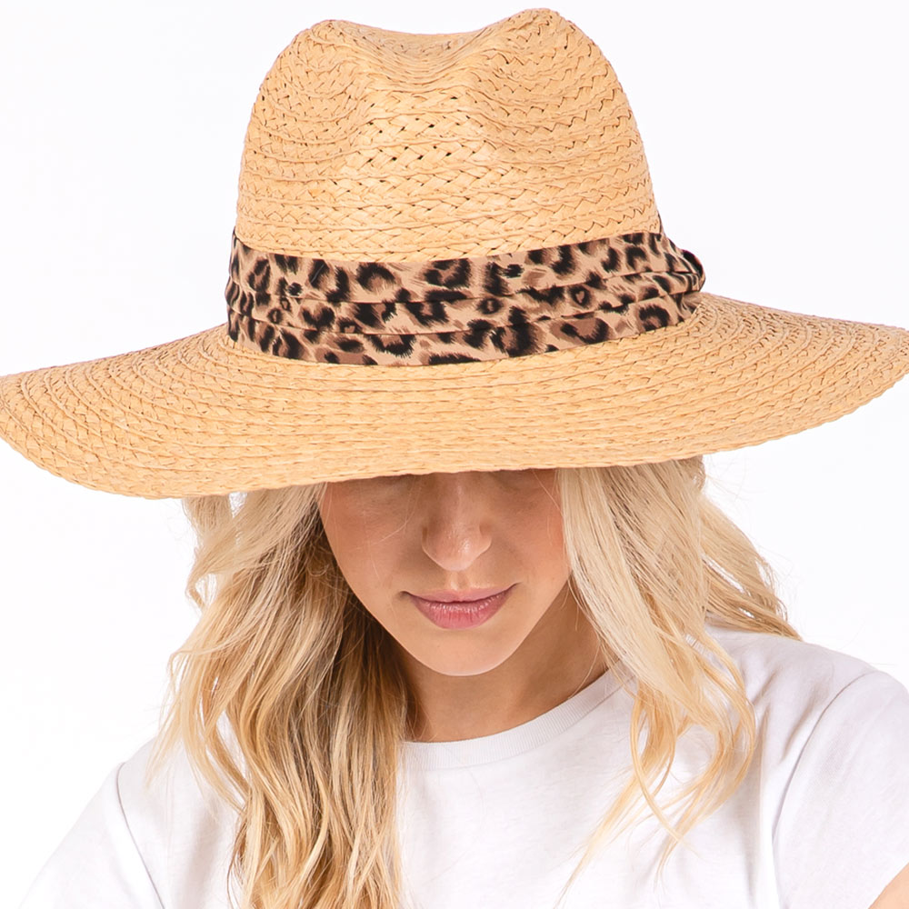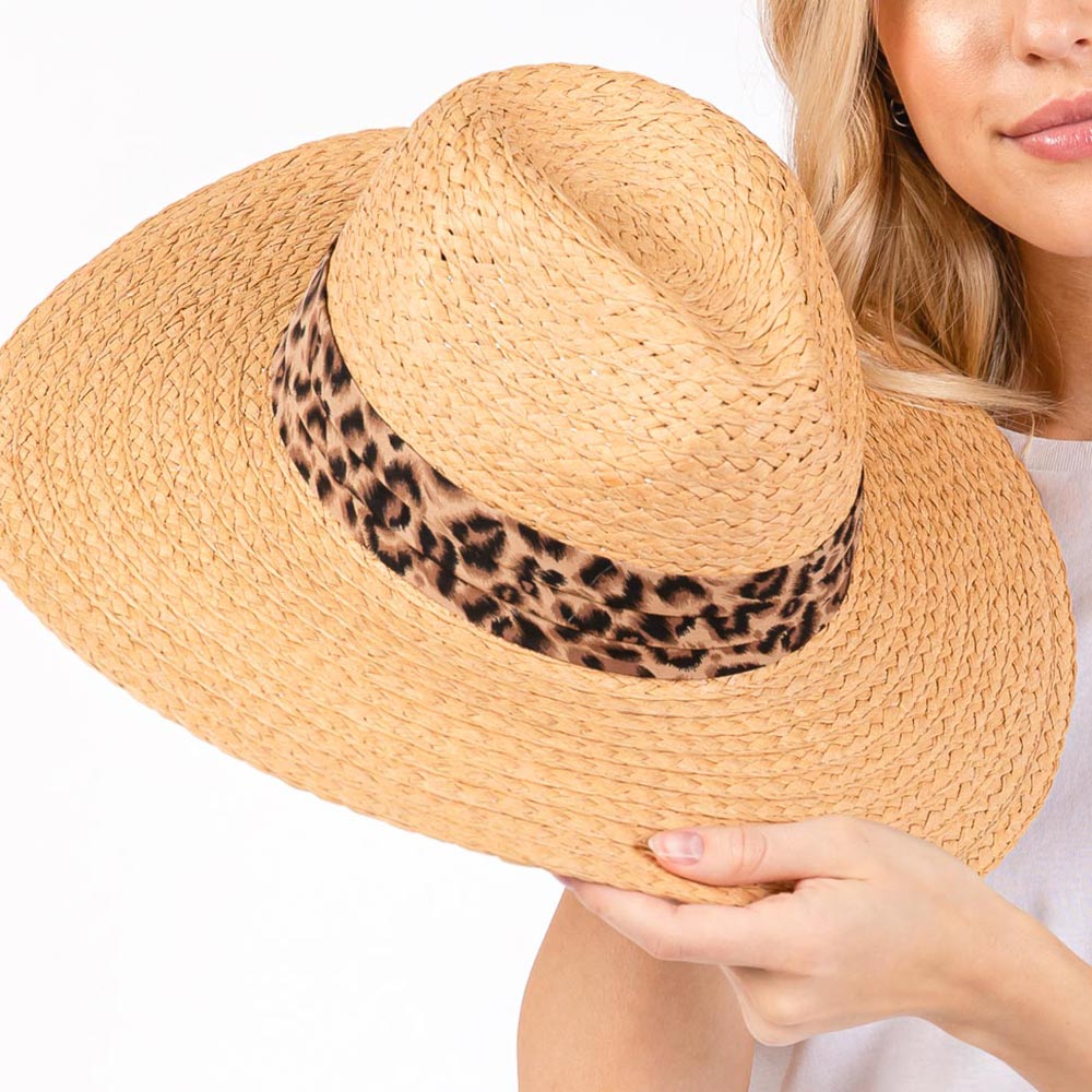 Leopard Band Straw Sun Hat