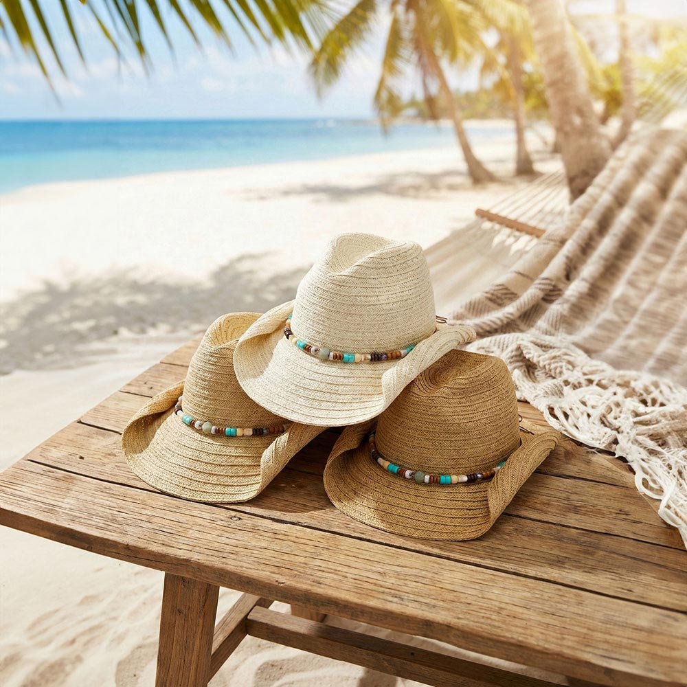 Stone Wood Beaded Band Summer Straw Cowboy Hat Stone Wood Beaded Band Summer Straw Cowboy Hat Stone Wood Beaded Band Summer Straw Cowboy Hat