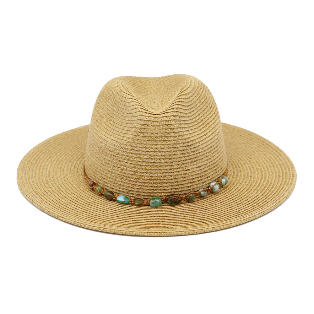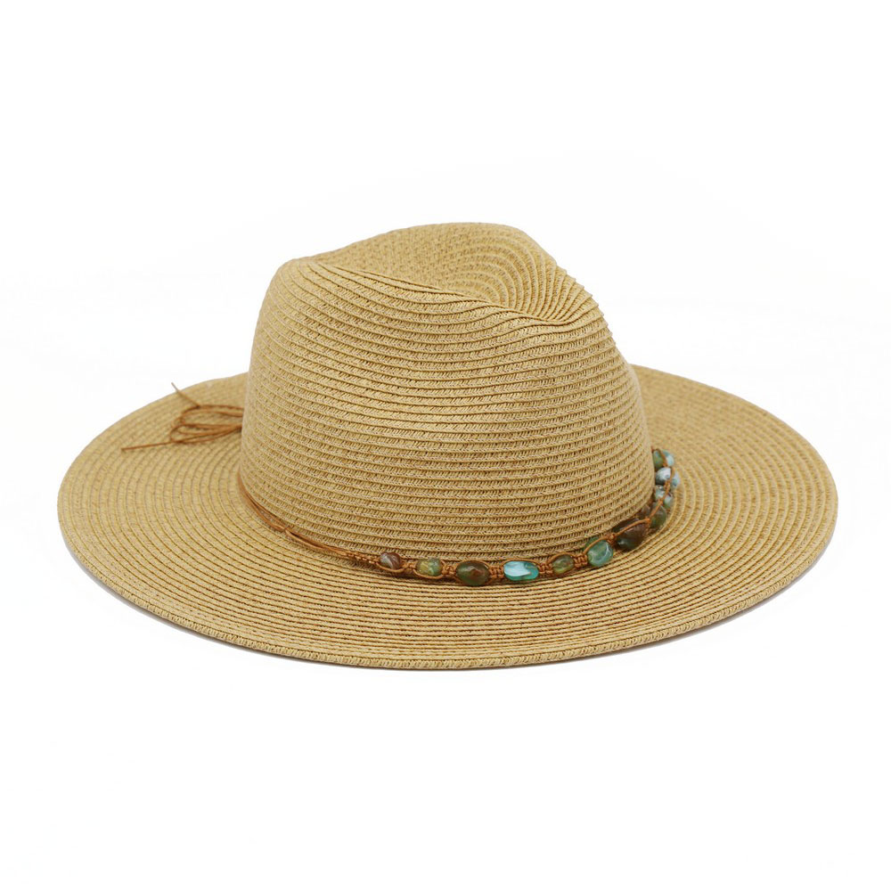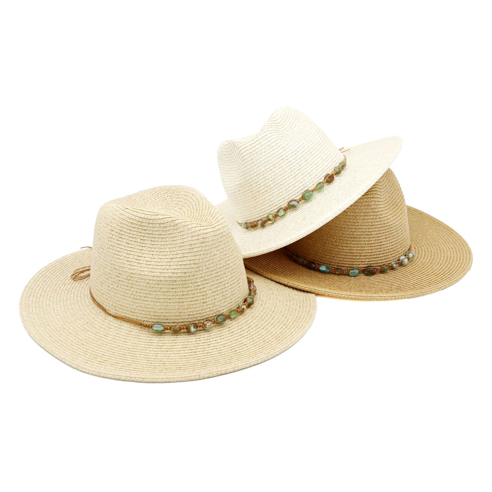 Details • Size : One Size • Material : 80% Paper, 20% Polyester • This wide brim fedora sun hat features a structured crown accented with a decorative beaded band for added texture and style. Designed for everyday wear, travel, and resort looks, it pairs effortlessly with casual and elevated outfits. A versatile statement accessory that brings a polished finish to seasonal collections and boutique assortments while offering strong visual appeal for merchandising.