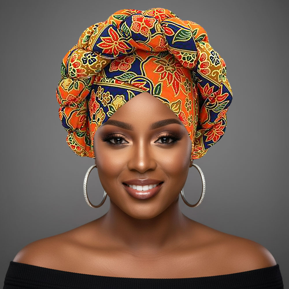 • This striking headwrap features a sculpted, voluminous design with an intricate all-over pattern that creates a standout look for any wardrobe. Its pre-formed structure offers effortless styling, making it ideal for expressive fashion statements, cultural events, or everyday elegance.
