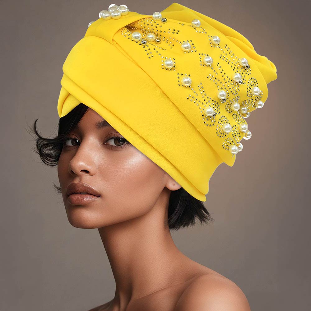 • Statement turban-style hat designed with dimensional shaping and elegant pearl-style embellishments for elevated styling. Ideal for special occasions, formal events, and boutique fashion collections, this headpiece delivers a polished silhouette with eye-catching texture and refined decorative detail.
