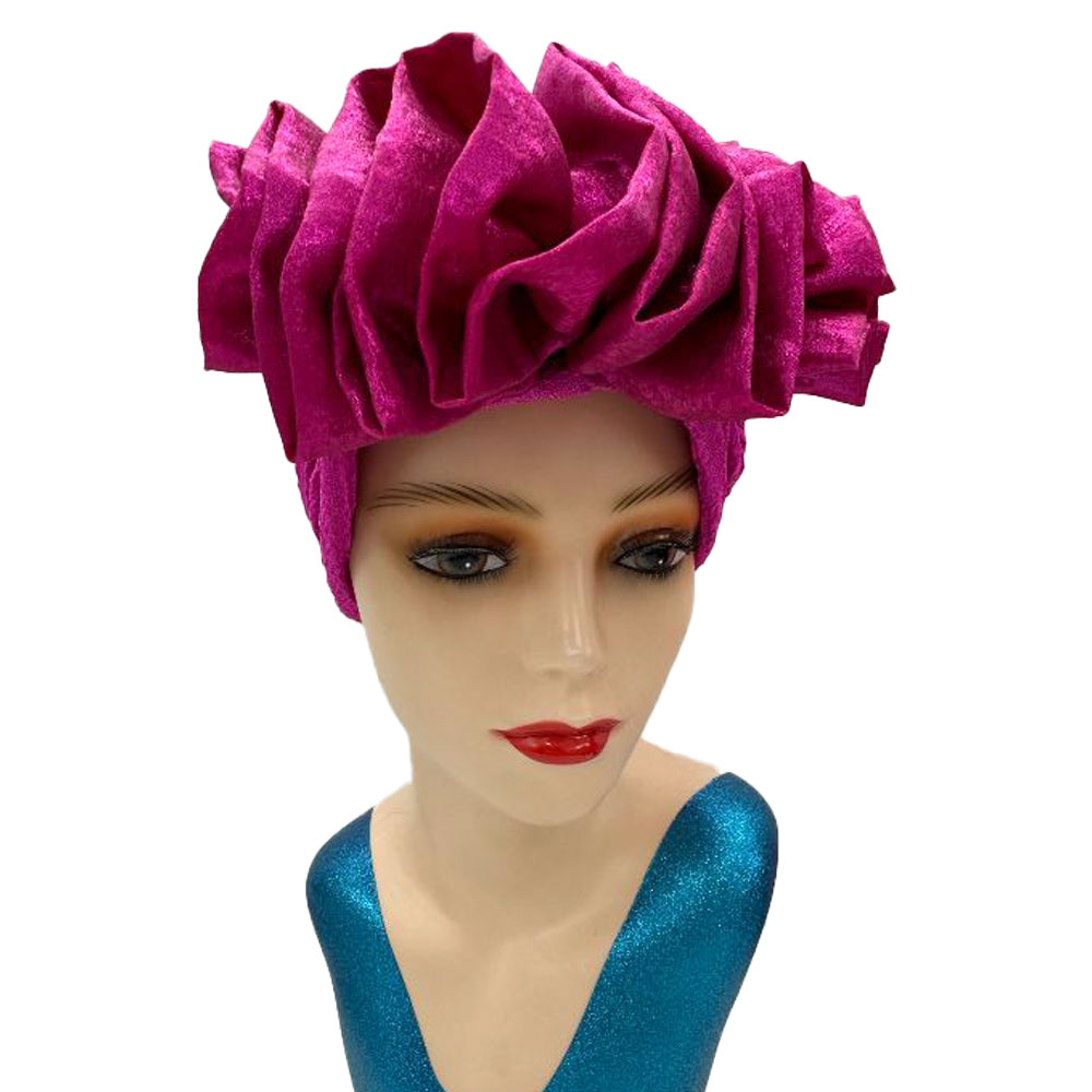 • This elegant ruffled statement headwrap adds dramatic flair and sophistication to any outfit. Designed with voluminous layered detailing, it offers a bold, sculpted silhouette perfect for special occasions, cultural events, or elevating everyday fashion with timeless grace.