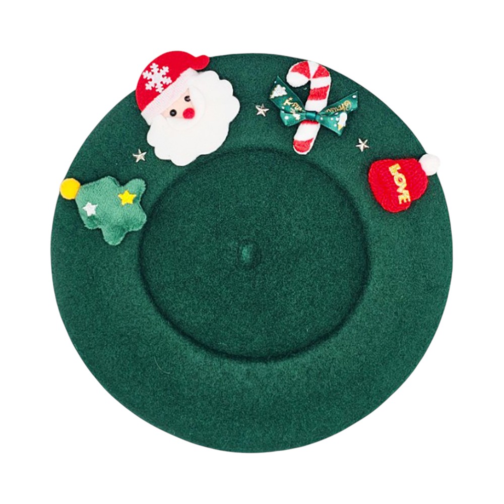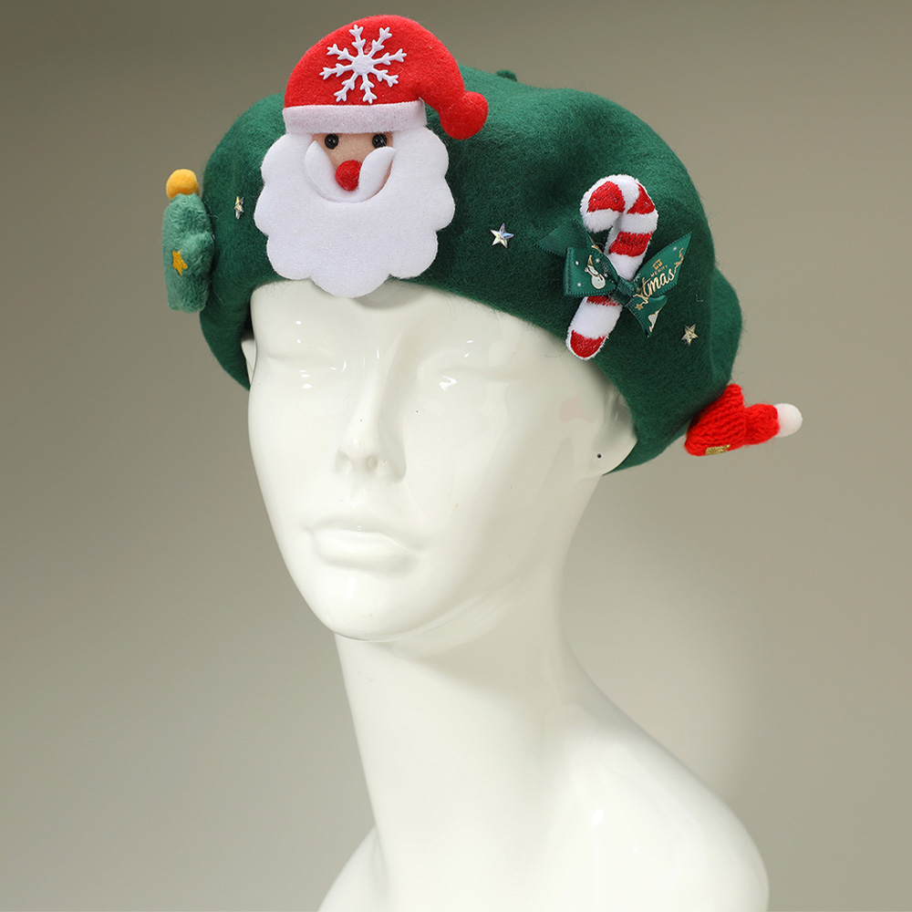 • Festive Christmas beret hat featuring a cheerful Santa design, candy cane, and holiday-themed details. A playful accessory perfect for parties, gatherings, and seasonal outfits. Add charm and holiday cheer to your winter look with this fun Christmas hat, ideal for gifting or festive celebrations.