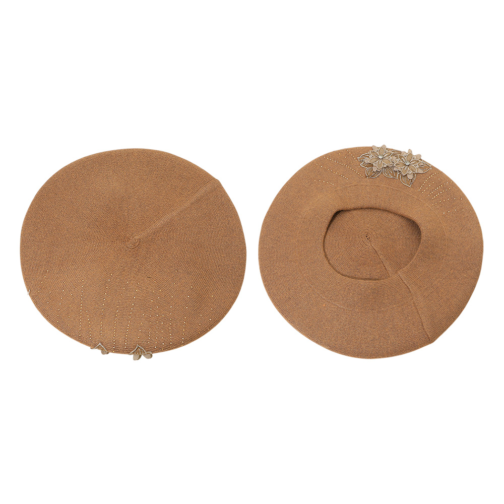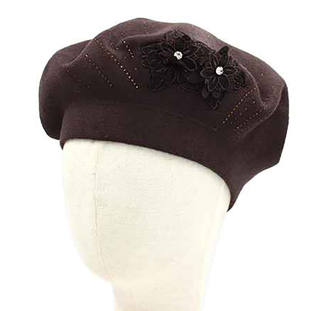 Floral Applique Accent Winter Beret Hat Floral Applique Accent Winter Beret Hat Floral Applique Accent Winter Beret Hat