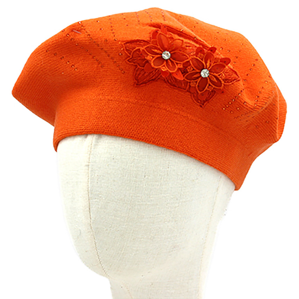 Floral Applique Accent Winter Beret Hat Floral Applique Accent Winter Beret Hat Floral Applique Accent Winter Beret Hat