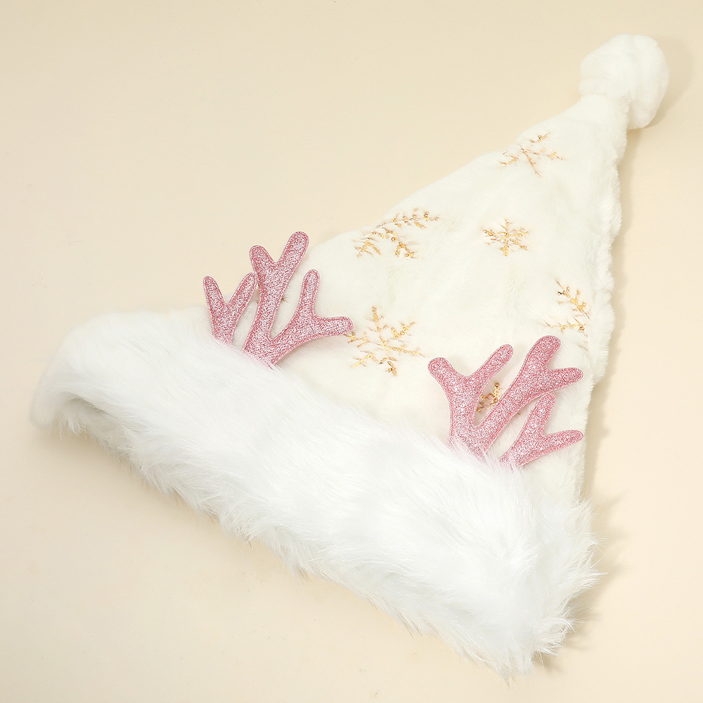 Fluffy Christmas Antler Accent Sequin Snowflake Pattern Santa Hat