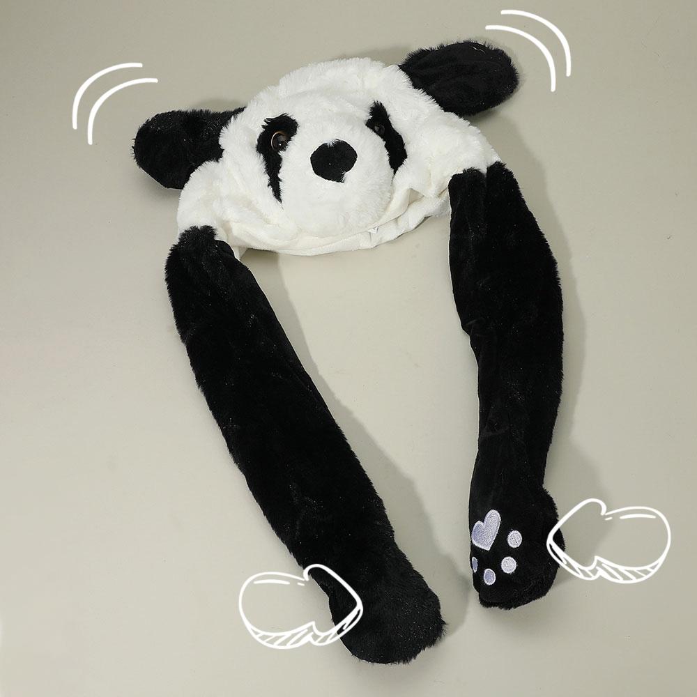 Details • Size : One Size (18" L) • Material : 100% Polyester • Stay cozy and playful with this animated panda hat featuring movable ears that lift when you press the paws. Perfect for festivals, cosplay, parties, or casual fun, this cute accessory adds charm and warmth while making a unique gift for kids, teens, and adults.