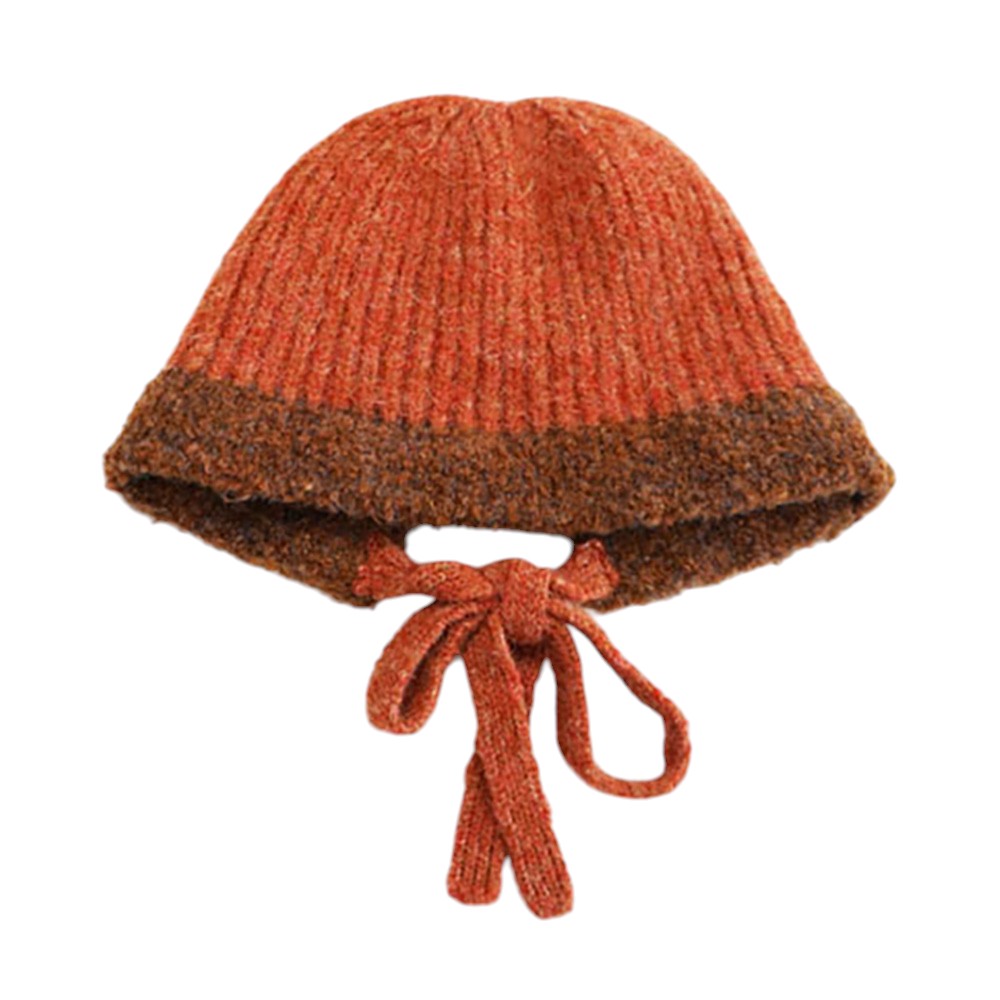 Details • Size : One Size • Material : 8% Wool, 21% Nylon, 70% Polyester, 1% Spandex • Stay warm and chic with this knit bonnet hat featuring a soft ribbed design, cozy lined interior, and adjustable tie closure under the chin. Perfect for cold-weather outings, this stylish winter cap combines vintage charm with modern comfort, making it a versatile accessory for seasonal wear.
