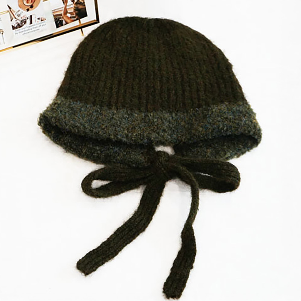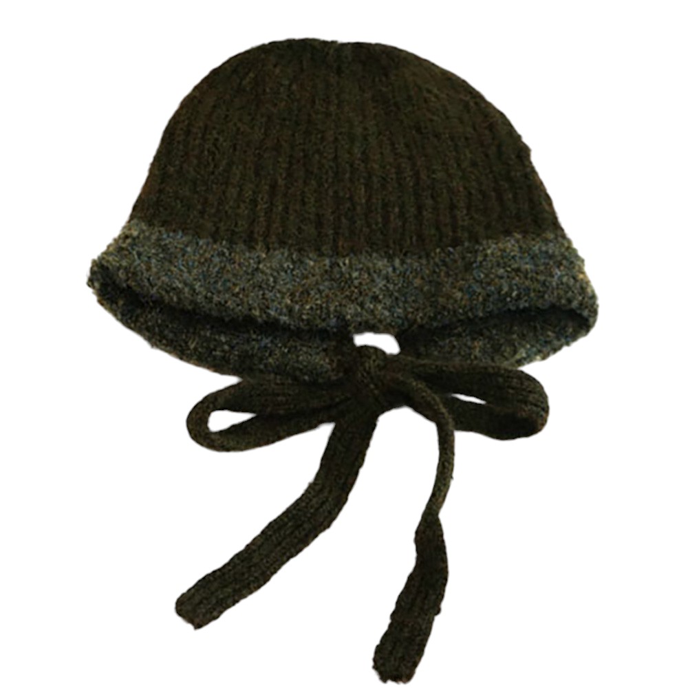 Details • Size : One Size • Material : 8% Wool, 21% Nylon, 70% Polyester, 1% Spandex • Stay warm and chic with this knit bonnet hat featuring a soft ribbed design, cozy lined interior, and adjustable tie closure under the chin. Perfect for cold-weather outings, this stylish winter cap combines vintage charm with modern comfort, making it a versatile accessory for seasonal wear.