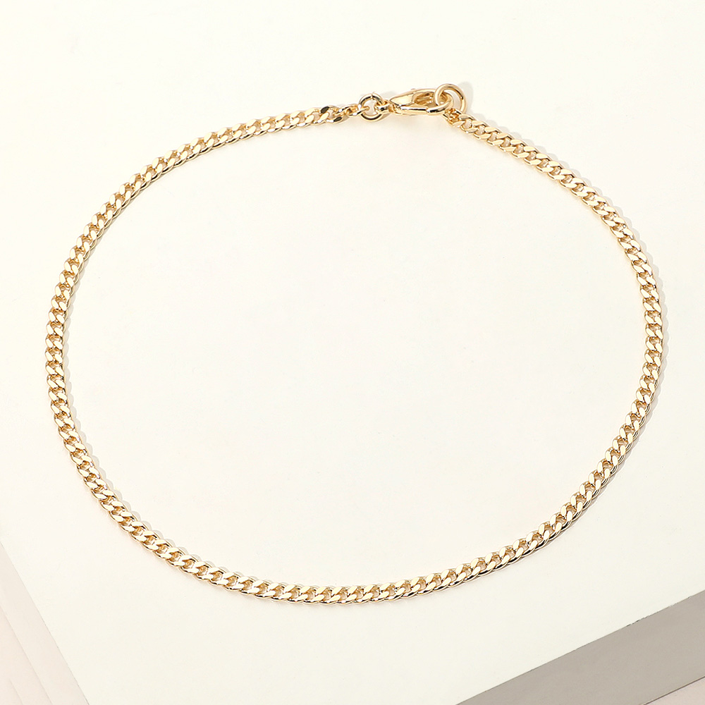 Details • Size : 0.1" H (2mm), 9" L • Lobster Clasp • Timeless Cuban chain anklet featuring smooth flat links with a sleek polished shine. Its classic design offers effortless sophistication, perfect for daily wear or layering with other pieces. A versatile accessory that adds a refined touch to any modern or classic look. • Gold Filled • Lead and Nickel Compliant • Made In Brazil
