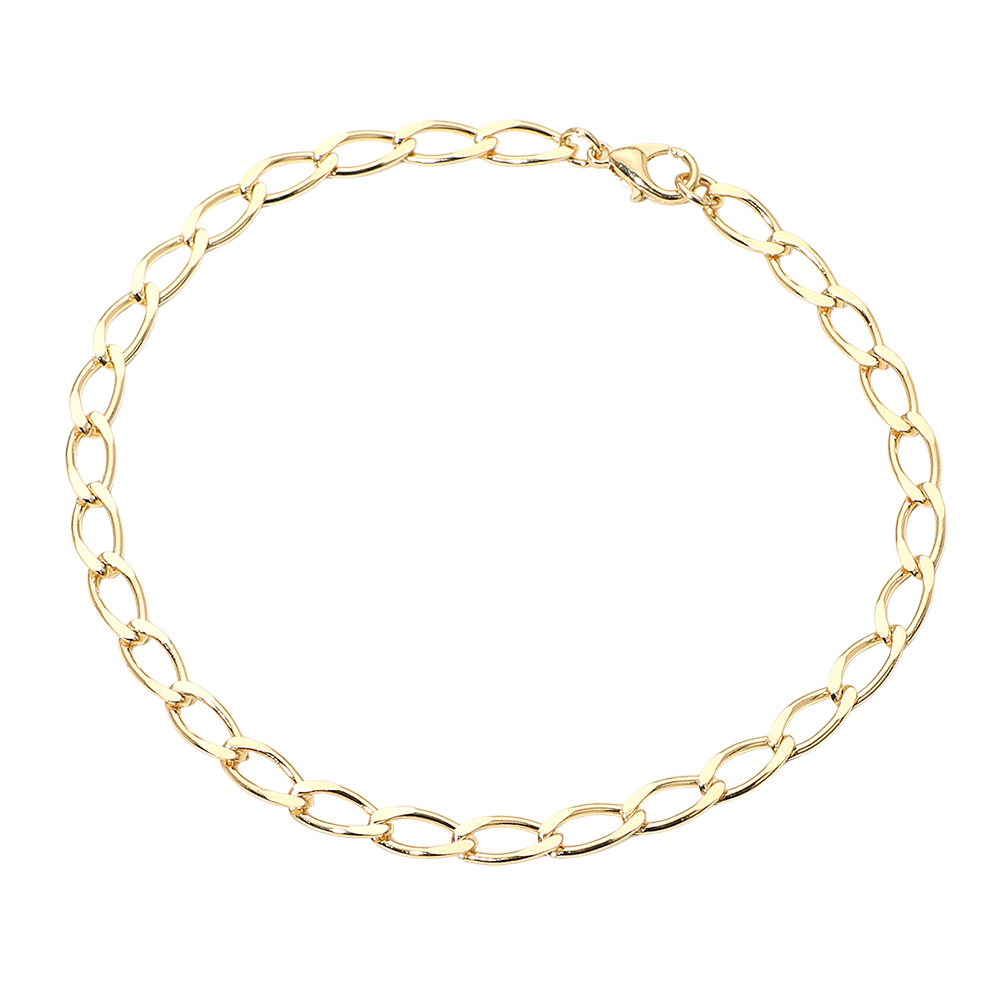 Details • Size : 0.25" H (4mm), 8.5" L • Lobster Clasp Closure • Elegant oval link anklet featuring smooth, polished links for a modern and versatile look. Crafted with 18K gold-filled finish, this lightweight piece adds a touch of sophistication to any outfit—perfect for layering or wearing solo for a minimalist style statement. • Gold Filled • Lead and Nickel Compliant • Made In Brazil