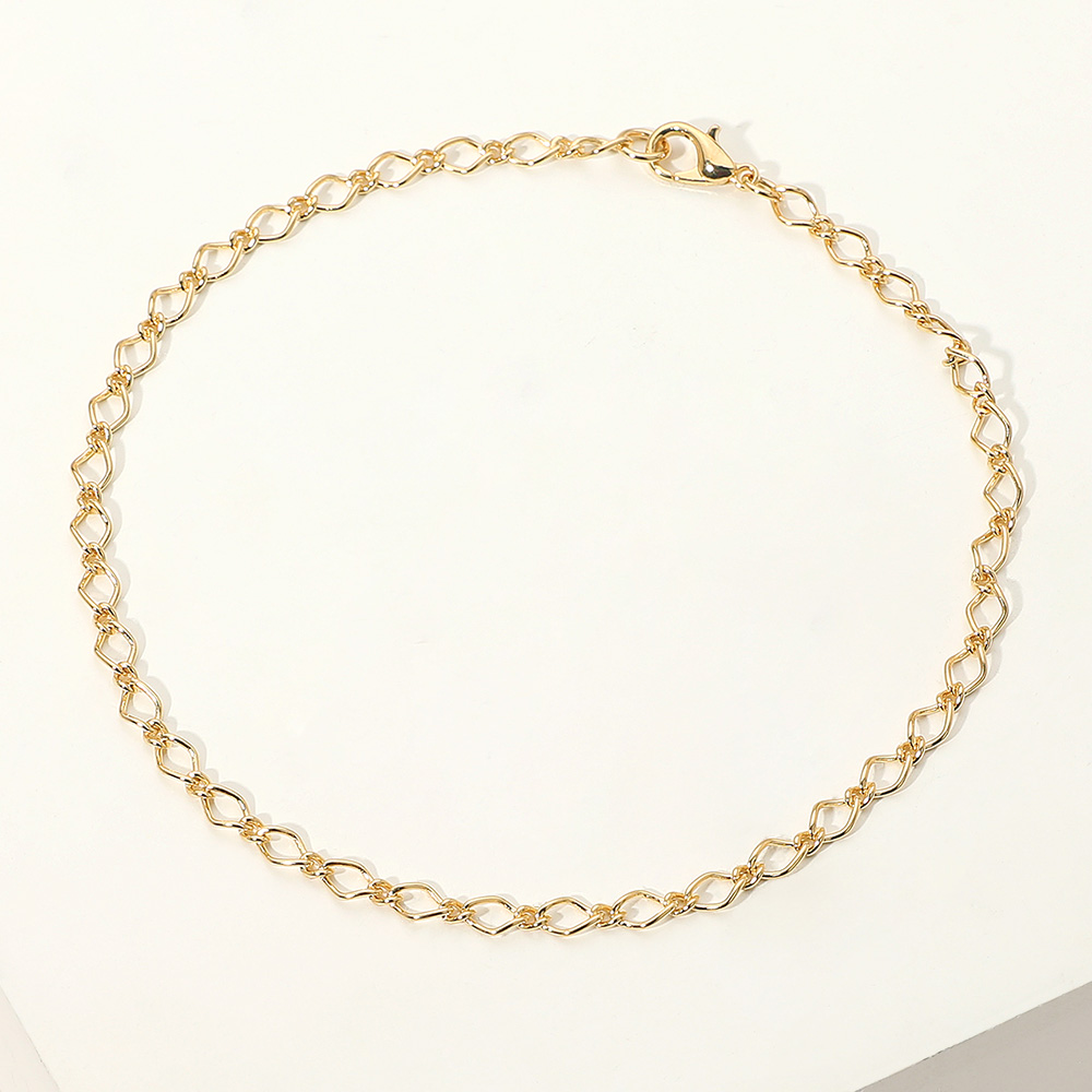 Details • Size : 0.1" H (3mm), 9" L • Lobster Clasp Closure • Stylish anklet featuring twisted oval links that reflect light beautifully for a refined shimmer. This 18K gold-filled piece adds a touch of sophistication and texture, perfect for layering with other jewelry or wearing alone for a minimalist, timeless look. • Gold Filled • Lead and Nickel Compliant • Made In Brazil