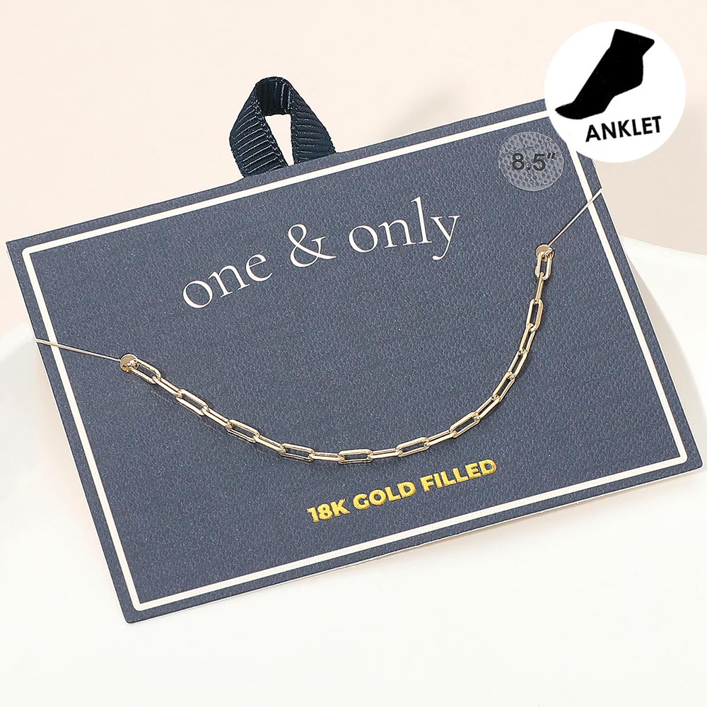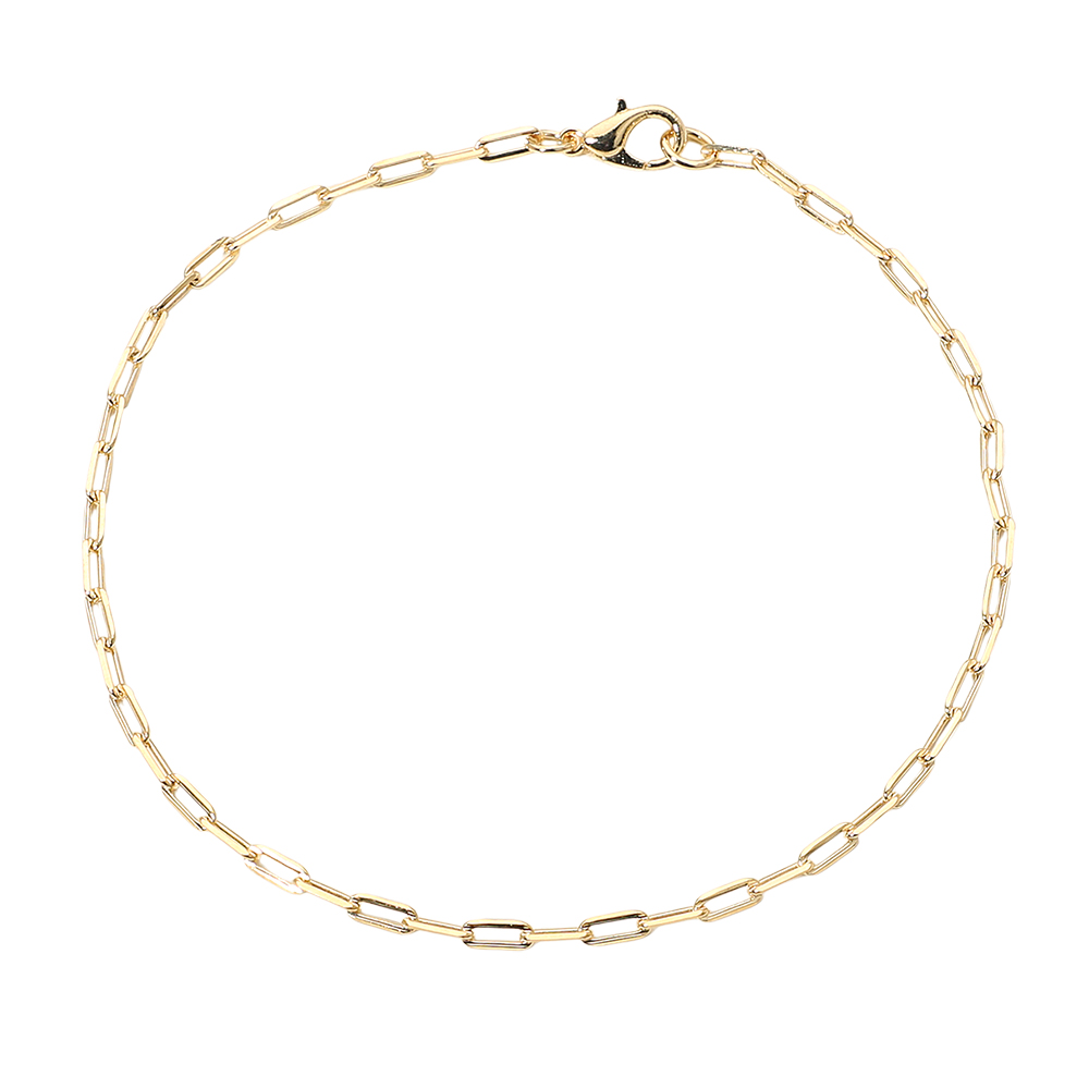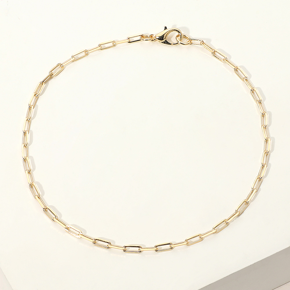Details • Size : 0.1" H (2mm), 8.5" L • Lobster Clasp Closure • Sleek rectangular paperclip link chain anklet with a polished modern design that complements any style. Ideal for everyday wear or layering, this minimalist anklet adds a refined touch of elegance and sophistication to your casual and dressy looks alike. • Gold Filled • Lead and Nickel Compliant • Made In Brazil