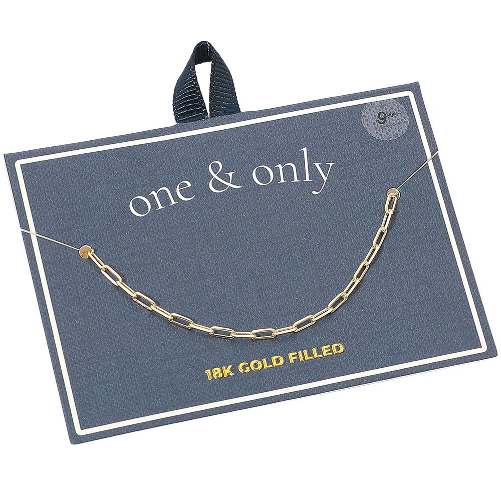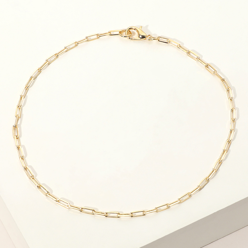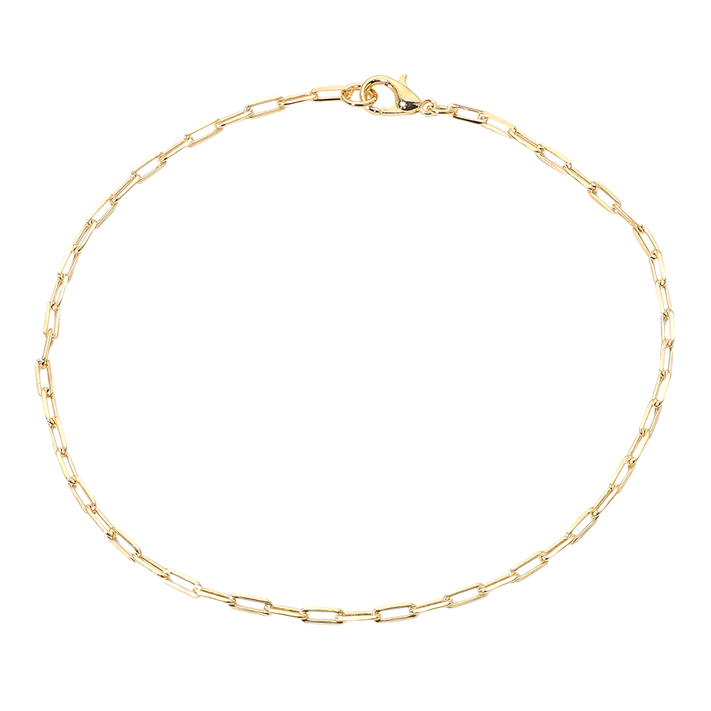 Details • Size : 0.1" H (2mm), 9" L • Lobster Clasp Closure • Sleek rectangular paperclip link chain anklet with a polished modern design that complements any style. Ideal for everyday wear or layering, this minimalist anklet adds a refined touch of elegance and sophistication to your casual and dressy looks alike. • Gold Filled • Lead and Nickel Compliant • Made In Brazil
