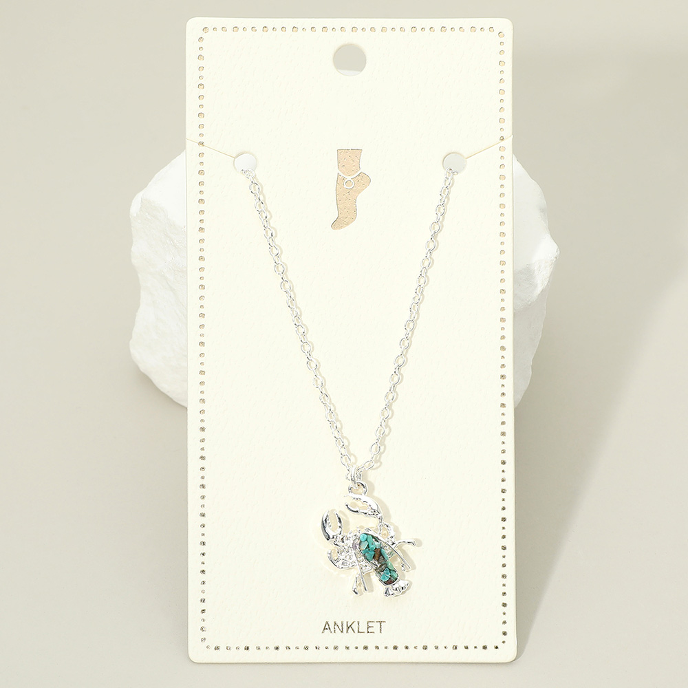 Details • Size : 9" + 1.5" L • Charm Size : 0.75" X 1" • Lobster Clasp Closure • Crushed pebble lobster charm anklet featuring a playful ocean-themed pendant that adds bold coastal personality to ankle styling. Designed for lightweight, comfortable wear with eye-catching movement, ideal for summer outfits, resort looks, and beach-inspired collections. A great choice for gift shops, boutiques, and seasonal fashion jewelry assortments. • Lead and Nickel Compliant