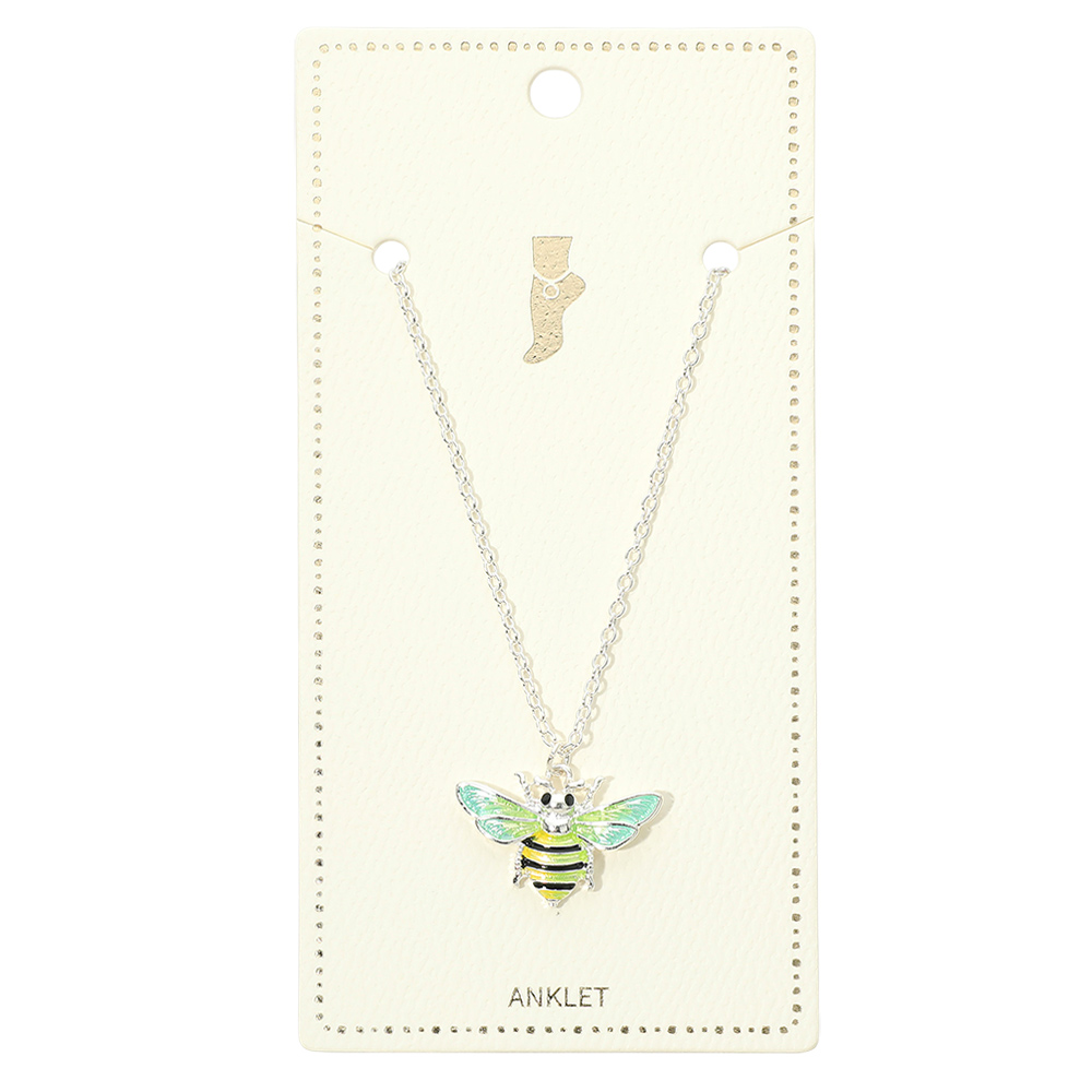 Details • Size : 9" + 1.5" L • Charm Size : 0.8" X 0.75" • Lobster Clasp Closure • Bee charm anklet featuring a cheerful nature-inspired design that adds playful personality to ankle styling. Ideal for spring and summer collections, everyday wear, and giftable displays, this anklet appeals to boutiques seeking whimsical, trend-forward fashion jewelry with broad customer appeal and easy styling versatility. • Lead and Nickel Compliant