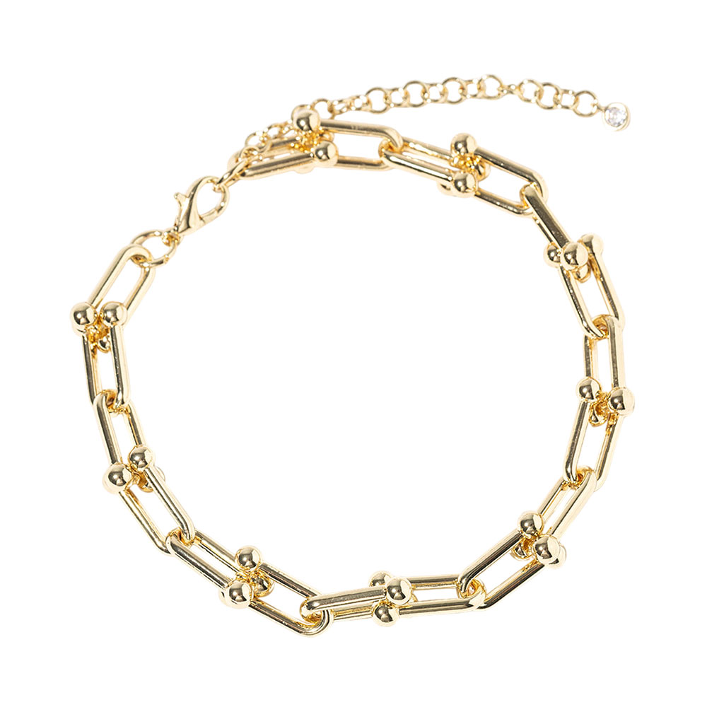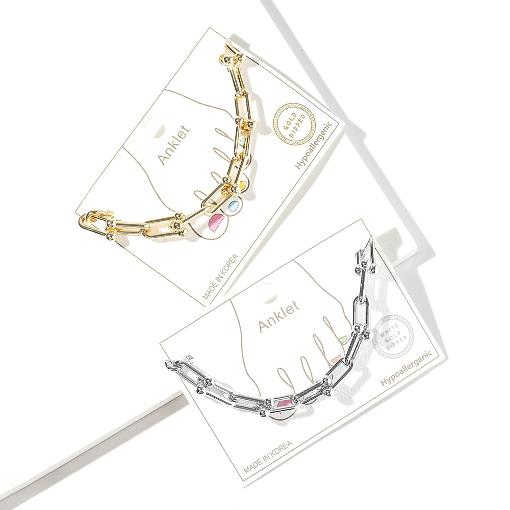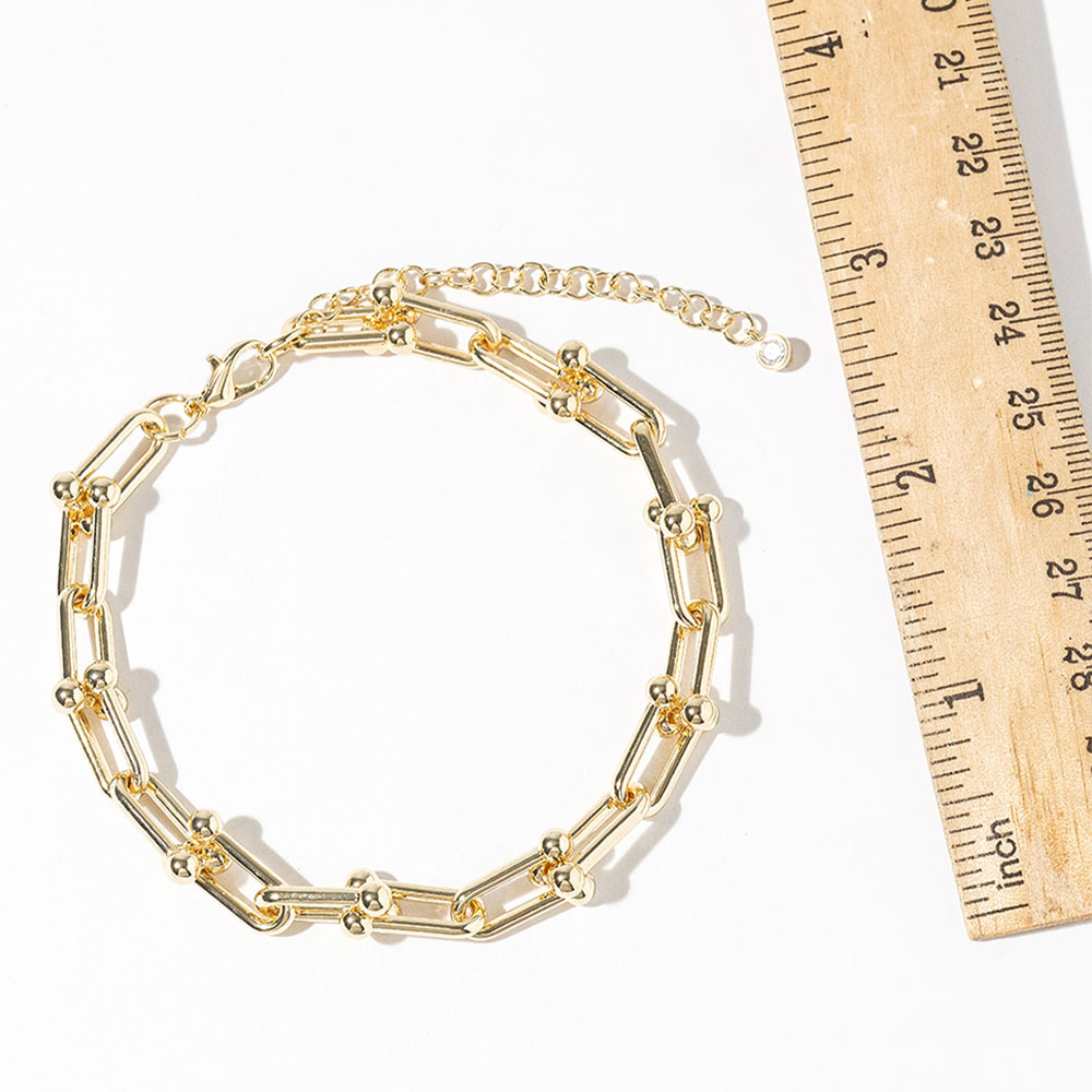 • This trendy anklet features elongated paperclip-style links accented with polished bead details for added dimension. Gold-dipped and hypoallergenic, it delivers both style and comfort—perfect for everyday wear or layering with other anklets for a bold, modern look.