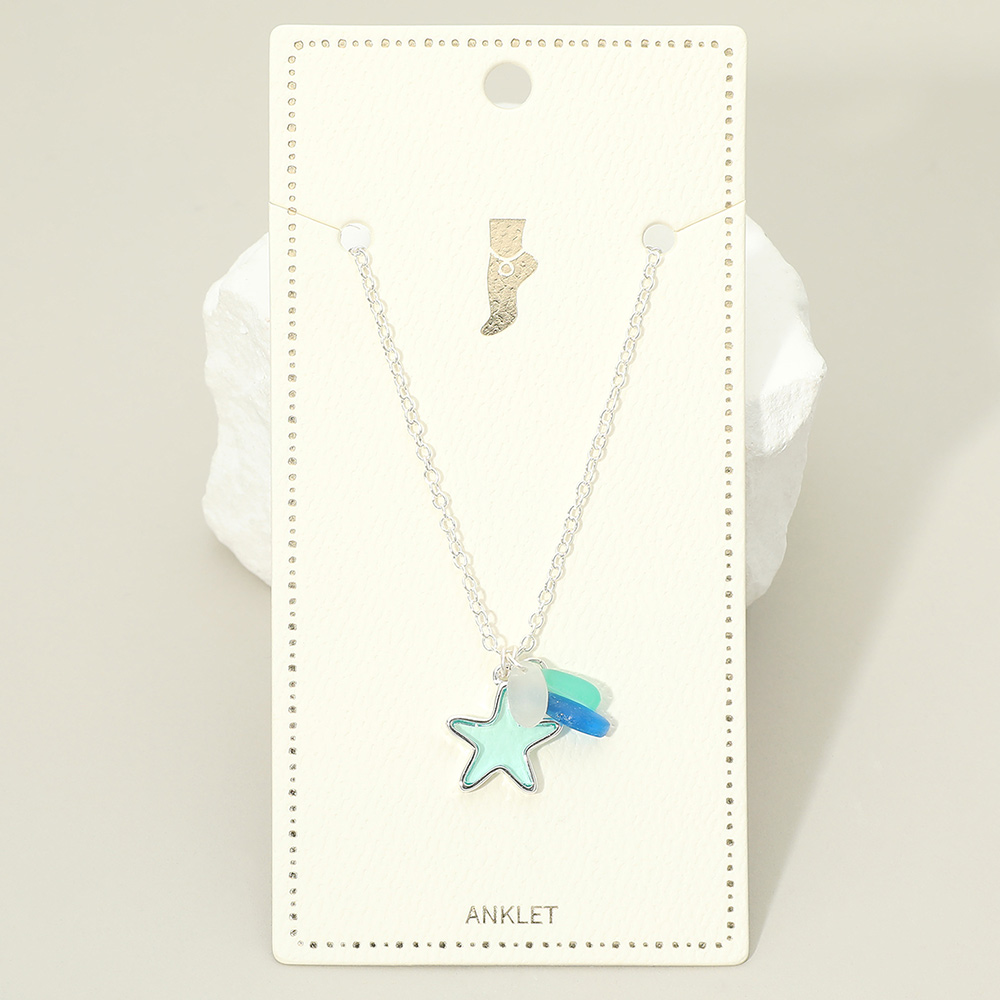 Details • Size : 9" + 1.5" L • Charm Size : 0.6" X 0.7" • Lobster Clasp Closure • Starfish charm anklet featuring a layered, beach-inspired design that adds playful movement and a subtle coastal touch to ankle styling. Lightweight and easy to wear for everyday looks or vacation outfits. Ideal for gifting or boutique collections focused on summer, ocean, and nature-themed fashion jewelry. • Lead and Nickel Compliant