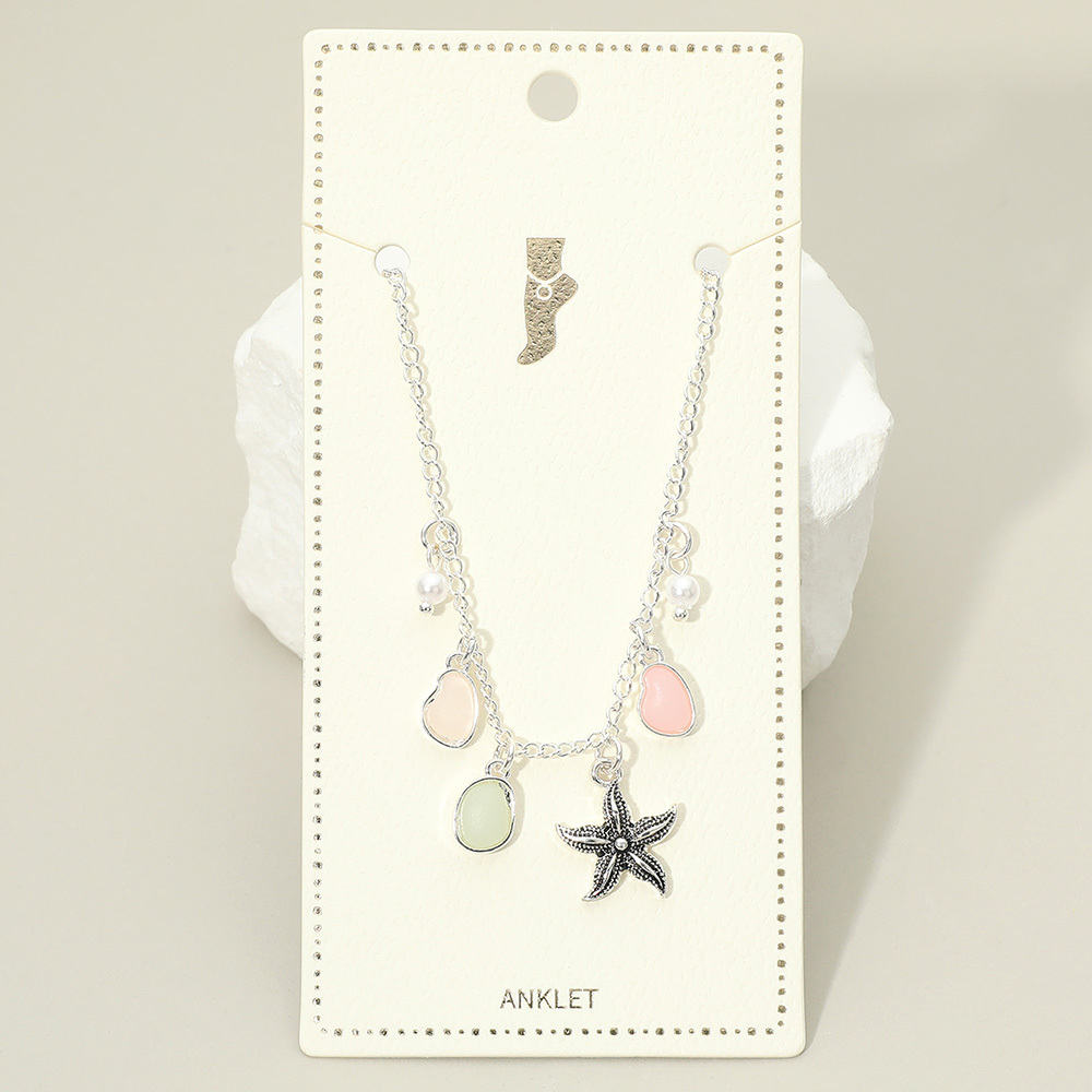 Starfish Sea Glass Pearl Charm Station Anklet