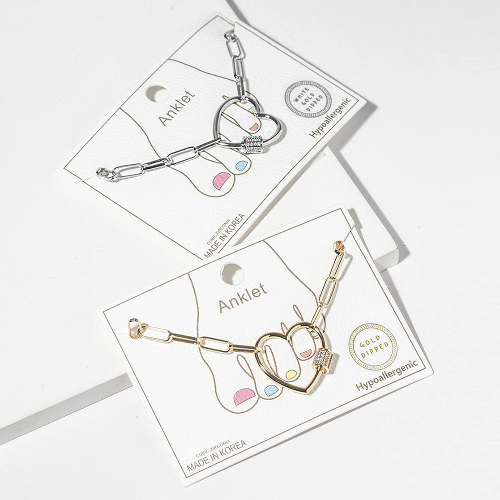 • Stylish heart link anklet featuring a sleek chain and sparkling cubic zirconia accent. This modern ankle bracelet adds a touch of charm and elegance to any outfit, perfect for layering or wearing solo for a polished, romantic look suitable for everyday wear or special occasions.