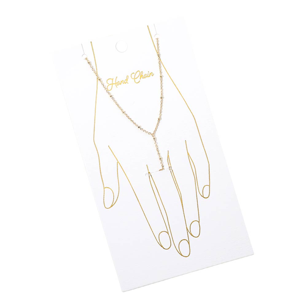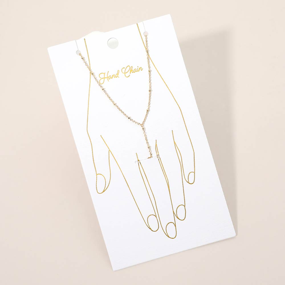 Details • Size : 5" H, 7.5" + 2.25" L • Ring Size : Free • Minimal hand chain bracelet featuring a slim wrist chain connected to a subtle finger ring for an elegant, modern look. Designed to sit comfortably on the hand, this refined piece adds graceful movement and visual interest. Ideal for boutique displays, gifting, special occasions, or everyday styling with a clean, feminine aesthetic. • Made In Korea