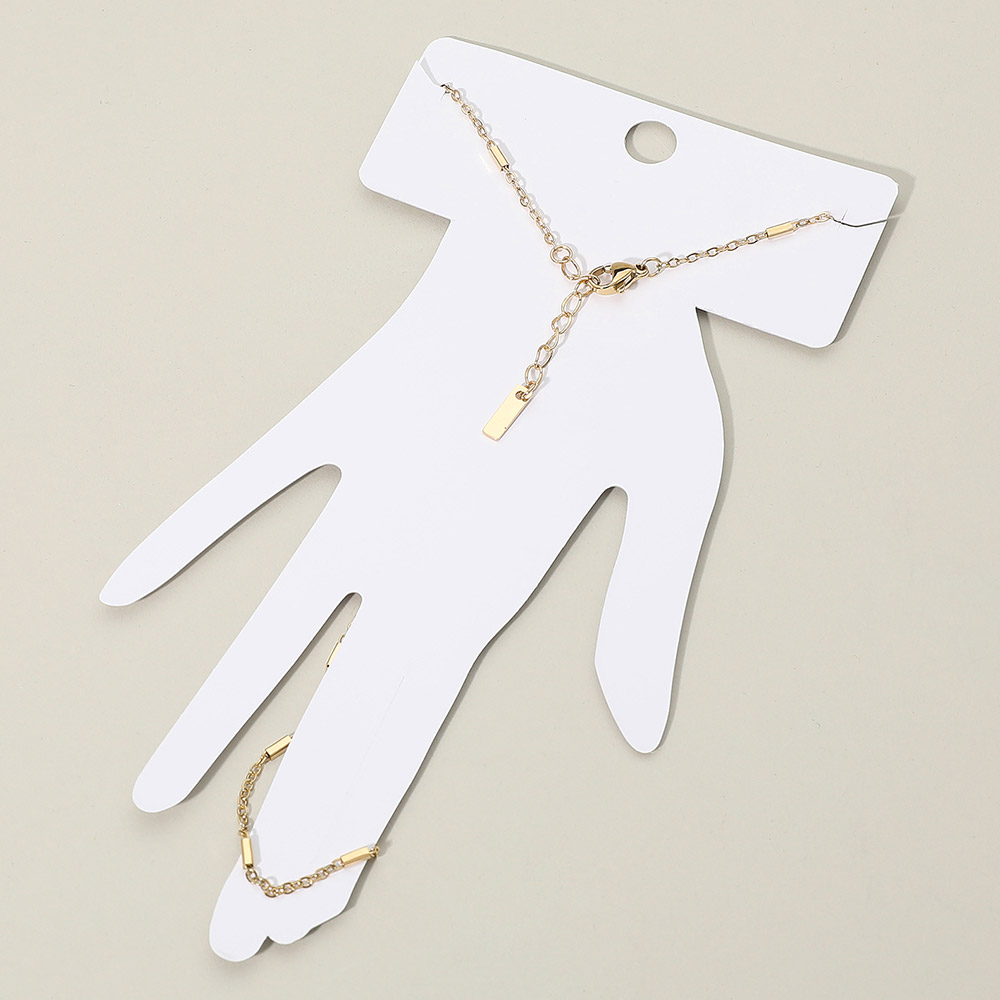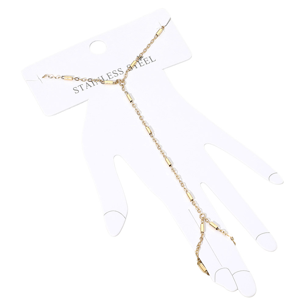 Details • Size : 3.5" H, 6.5" + 1" L • Ring Size : Free • Stylish geometric chain hand bracelet featuring delicate linked accents that connect from finger to wrist for a refined, modern look. Lightweight and comfortable, this accessory adds subtle elegance to everyday outfits or special occasions with its sleek, minimal design. • Stainless Steel
